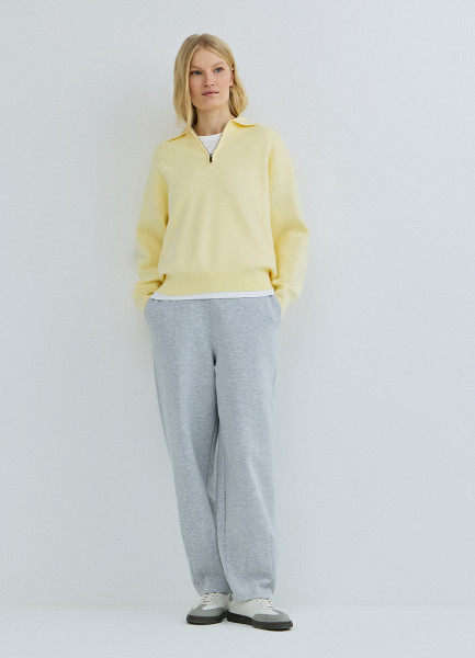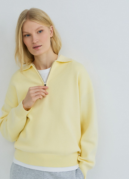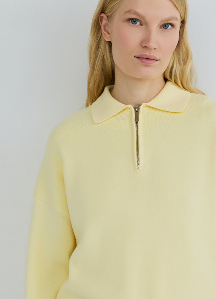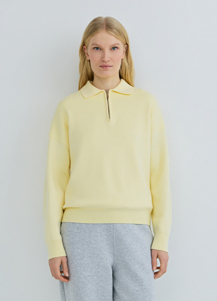 Джемпер с воротником поло на молнии, Желтый