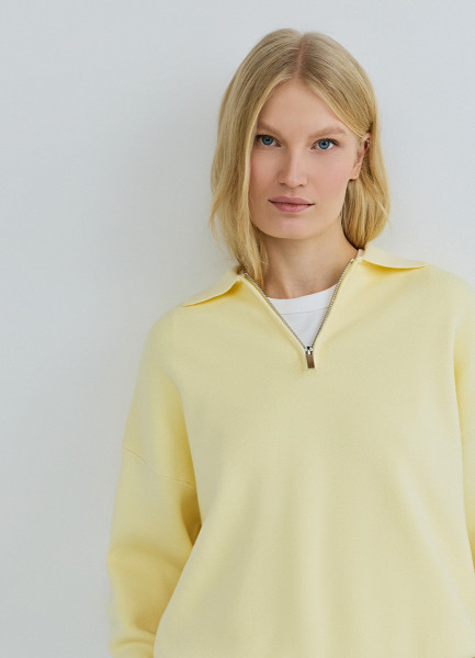 Джемпер с воротником поло на молнии, Желтый