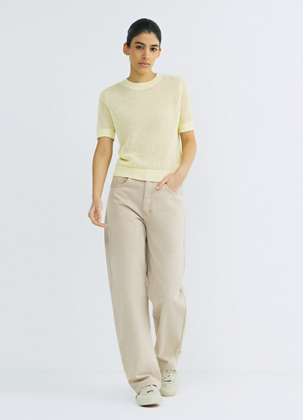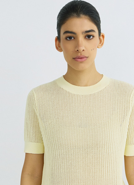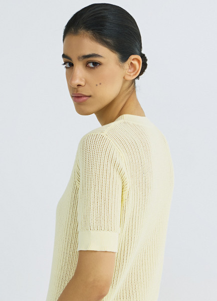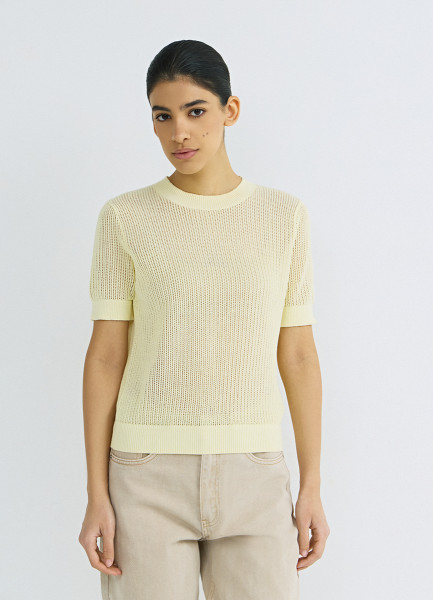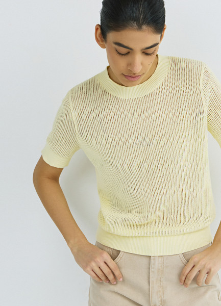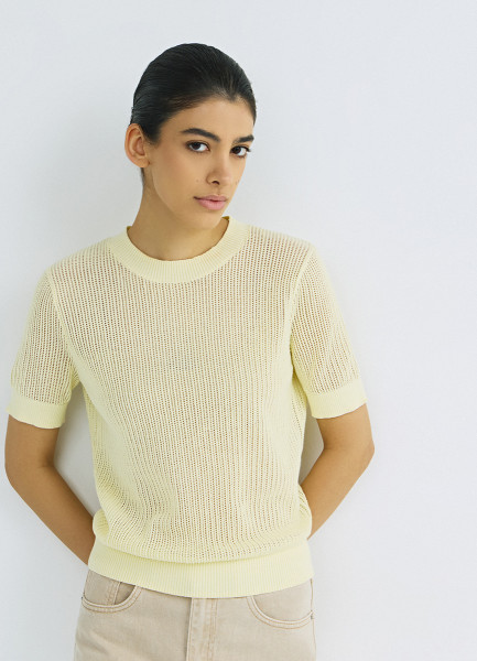 Ажурный джемпер с коротким рукавом, Желтый