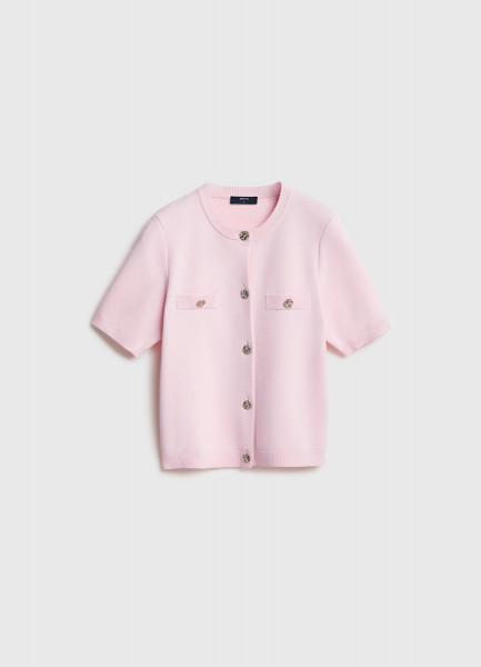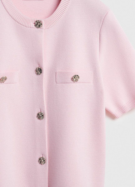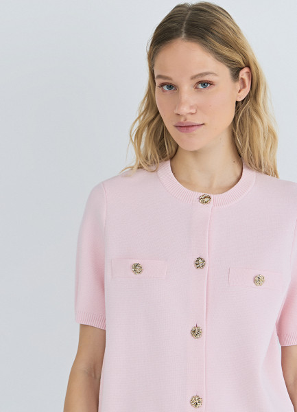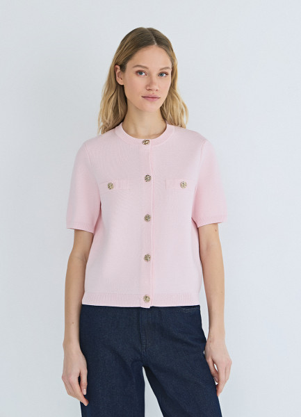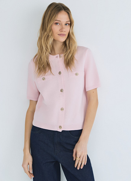 Кардиган с карманами и золотыми пуговицами, Розовый