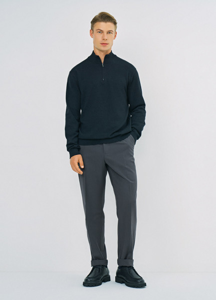 Джемпер с воротником-стойкой на молнии, Серый