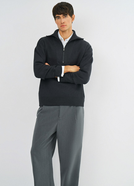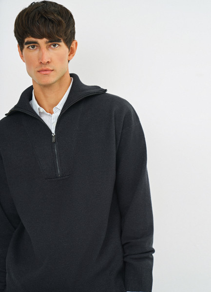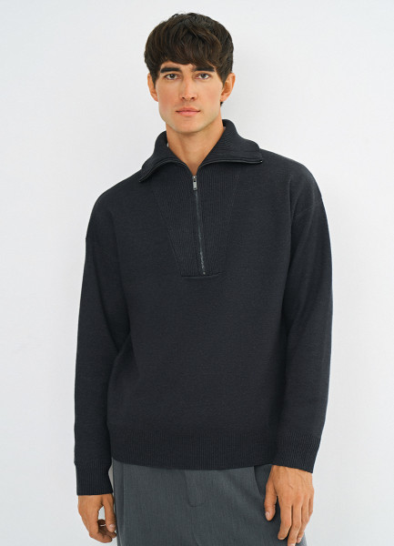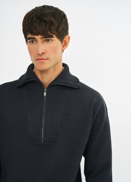 Джемпер с воротником-стойкой на молнии, Коричневый