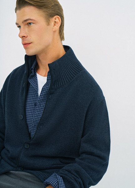 Вязаный кардиган с высоким воротником, Синий