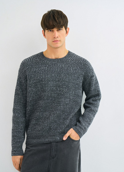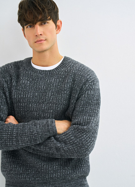 Вязаный джемпер-поло с длинным рукавом, Серый