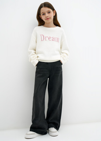 Вязаный джемпер с вышивкой для девочек, Бежевый