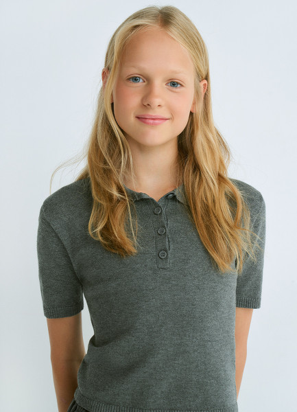 Вязаный джемпер с коротким рукавом для девочек, Серый