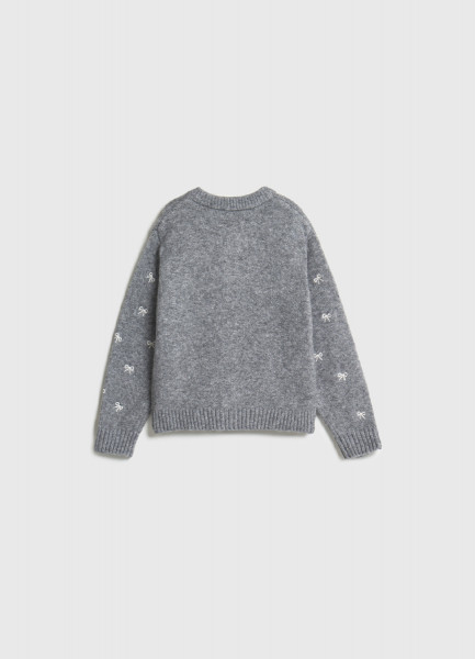 Вязаный джемпер с вышивкой для девочек, Бежевый