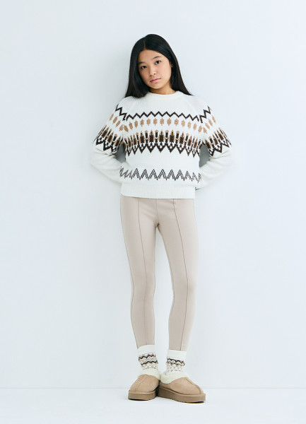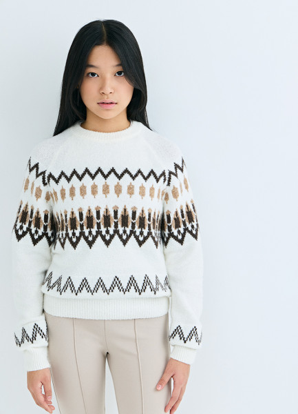 Вязаный джемпер с принтом для девочек, Бежевый