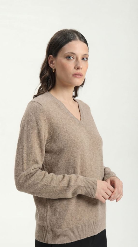Женский джемпер из кашемира цвета капучино — это сочетание изысканности и комфорта. Мягкий и теплый материал обеспечивает уют и приятные ощущения на коже в течение всего дня. Глубокий V-образный вырез подчеркивает линию шеи и придает образу женственность и элегантность. Универсальный оттенок капучино легко комбинируется с различными элементами гардероба. Отличный выбор для повседневных и офисных образов в прохладное время года.
