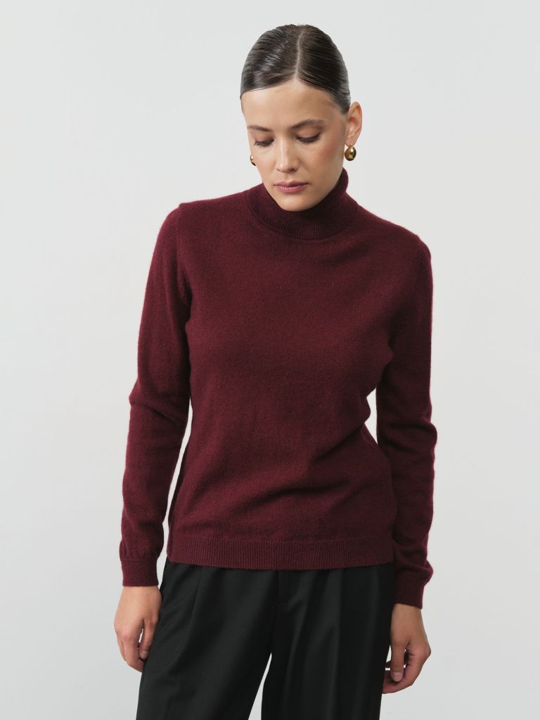 Женская водолазка из пуха яка в бордовом цвете – воплощение уюта и стиля. Пух яка обеспечивает исключительную мягкость и тепло, что делает этот свитер идеальным выбором для прохладных дней. Высокий воротник защищает шею от ветра, добавляя элегантности в повседневный образ. Бордовый цвет придает изделию благородство и выразительность, подчёркивая вашу индивидуальность. Эта водолазка легко сочетается с различными элементами гардероба, создавая стильные и комфортные комплекты.