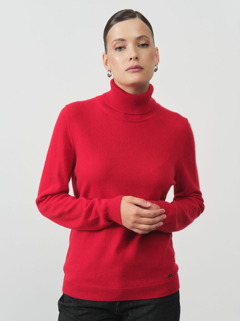 Женская водолазка из кашемира в красном цвете – идеальный выбор для тех, кто ценит комфорт и стиль. Кашемир, из которого выполнена водолазка, отличается мягкостью и теплотой, создавая ощущение уюта в любой обстановке. Яркий красный цвет привносит в образ энергию и динамичность, акцентируя внимание на вашей индивидуальности. Высокий воротник защищает от ветра, делая этот свитер отличным выбором для прохладных дней. Элегантная и универсальная, эта водолазка легко сочетаетcя с различными элементами гардероба.