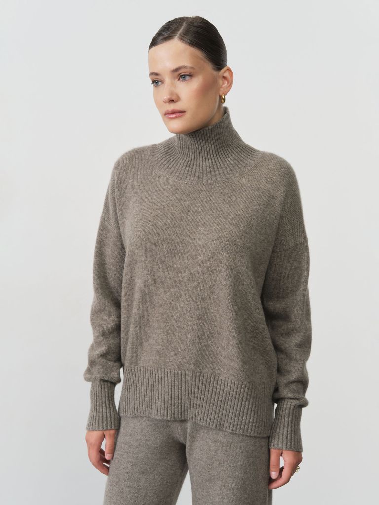 Серый свитер из пуха яка – идеальное сочетание природного тепла и утонченной эстетики. Этот благородный материал, собранный в высокогорных районах, обладает уникальными свойствами: его волокна в восемь раз теплее овечьей шерсти, при этом невероятно легкие и мягкие. Натуральный пух яка создает оптимальную терморегуляцию, сохраняя комфортную температуру тела даже в сильные морозы.Благородный серый оттенок с деликатным матовым блеском делает эту модель универсальной основой зимнего гардероба. Свитер одинаково элегантно смотрится с юбками-карандаш из твида, кожаными брюками и утепленными джинсами-скинни. Облегающий, но не стесняющий движений крой подчеркивает женственный силуэт, а высокая горловина обеспечивает дополнительную защиту от холода.Этот свитер – воплощение осознанного подхода к зимнему гардеробу. Пух яка не только экологичен, но и исключительно долговечен – при правильном уходе изделие сохраняет форму и теплосберегающие свойства на долгие годы. Добавьте в свой гардероб эту теплую роскошь – пусть благородный серый оттенок и непревзойденные согревающие качества пуха яка станут вашей защитой от зимних холодов.