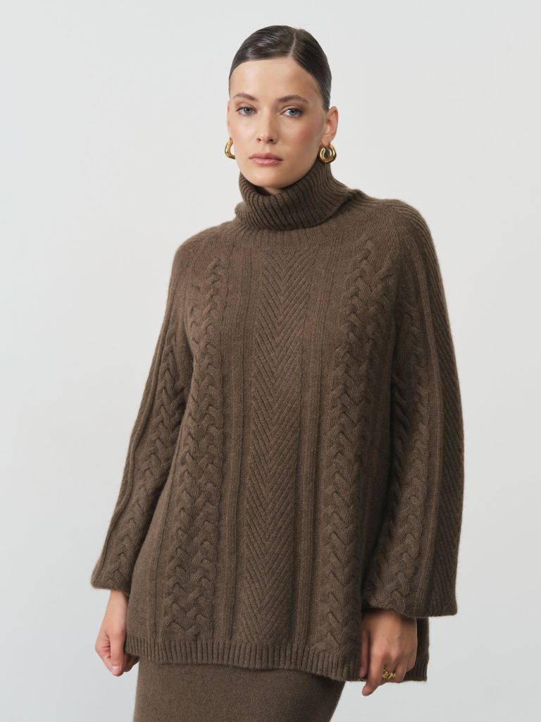 Коричневый свитер из пуха яка – это воплощение природной роскоши и функциональности. Созданный из редкого высокогорного сырья, он обладает уникальными терморегулирующими свойствами – в восемь раз теплее овечьей шерсти, но при этом удивительно легкий. Натуральные волокна образуют воздушные прослойки, которые надежно сохраняют тепло даже в сильные морозы, оставаясь при этом гипоаллергенными и комфортными для самой чувствительной кожи.Благородный коричневый оттенок с теплым подтоном делает эту модель универсальной основой зимнего гардероба. Свитер идеально сочетается с твидовыми юбками, кожаными брюками и утепленными джинсами, легко трансформируясь из офисного в casual-образ. Полуприлегающий крой мягко обрисовывает силуэт, сохраняя при этом свободу движений, а классическая горловина добавляет образу элегантную завершенность.Этот свитер – пример осознанного выбора для ценителей натуральных материалов. Пух яка не только экологичен, но и исключительно долговечен – при правильном уходе изделие сохраняет форму и теплосберегающие свойства на долгие годы. Добавьте в свой гардероб эту теплую роскошь – пусть благородный коричневый оттенок и уникальные свойства пуха яка станут вашей надежной защитой от зимних холодов.