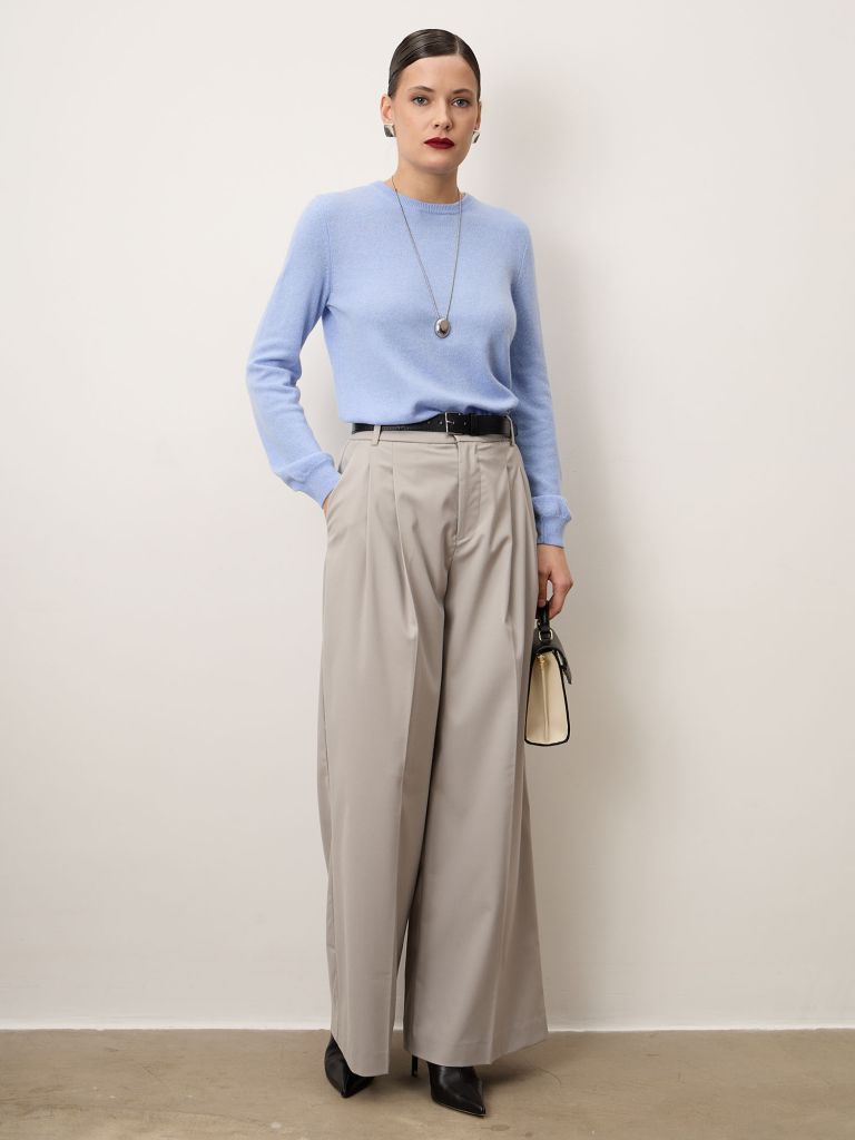 Женский джемпер из 100% монгольского кашемира в пыльно-голубом оттенке. Мягкий, нежный к коже и невероятно тёплый, с классическим кроем и ровной премиальной вязкой. Универсальная базовая вещь, которая подойдёт для любого сезона и образа.