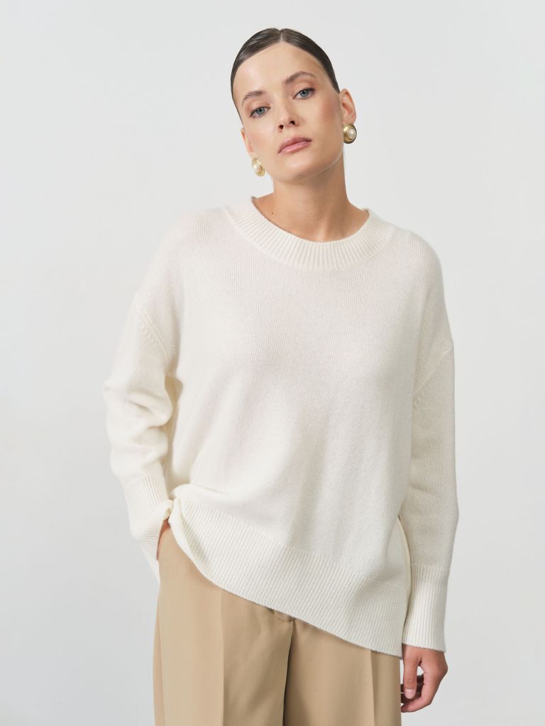 Свободный прямой силуэт обеспечивает комфортную посадку и свободу движений. Мягкий кашемир приятно прилегает к телу и дарит ощущение уюта.