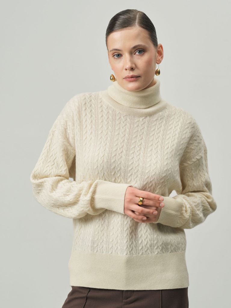 Женский свитер из кашемира KW051592-E — элегантная модель с выразительной фактурной вязкой, которая сочетает уют и изысканный стиль. Высокий воротник и мягкий силуэт создают комфортный и современный образ. Свитер станет универсальной частью гардероба и легко дополнит как повседневные, так и более элегантные сочетания.