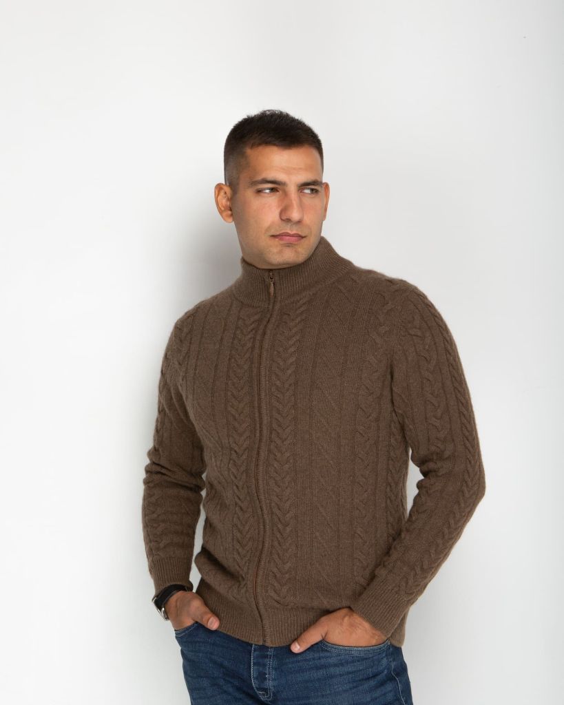 Роскошный мужской джемпер из 100% натурального пуха яка в элегантном коричневом цвете с рельефным узором – идеальное решение для ценителей комфорта и стиля. Этот эксклюзивный материал, добываемый в высокогорных районах Монголии, обладает уникальными свойствами для повседневной носки.Пух яка отличается исключительными теплоизоляционными качествами – он в 1,5 раза теплее обычной шерсти при минимальном весе. Благодаря особой структуре волокон, материал отлично регулирует температуру тела, обеспечивая комфорт в любую погоду. Природные антибактериальные свойства предотвращают появление неприятных запахов даже при активной носке.Стильный дизайн с рельефным узором и молнией на воротнике придает модели изысканность и функциональность. Глубокий коричневый цвет универсален – он идеально сочетается с различными элементами гардероба, от классических брюк до повседневных джинсов.Высокое качество материала и исполнения гарантирует, что джемпер сохранит первоначальный вид и свойства на протяжении долгого времени. Это инвестиция в комфорт и стиль на каждый день.Дополните свой гардероб этим превосходным джемпером из натурального пуха яка и наслаждайтесь непревзойденным теплом и мягкостью экзотического материала!