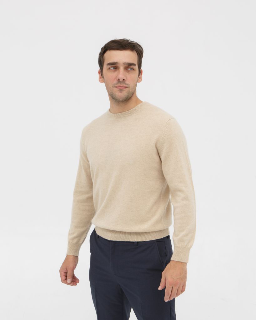 Элегантный мужской джемпер из 100% натурального кашемира в универсальном бежевом цвете – воплощение роскоши и комфорта для повседневной жизни. Премиальное качество материала обеспечивает непревзойденные тактильные ощущения и исключительное тепло.Натуральный кашемир, добываемый из подшёрстка горных коз, ценится за уникальное сочетание свойств: он в 7-8 раз теплее обычной шерсти при минимальном весе, обладает естественной гипоаллергенностью и создаёт идеальный микроклимат для тела. Волокна кашемира настолько тонкие и мягкие, что обеспечивают абсолютный комфорт при соприкосновении с кожей.Классический крой с круглым вырезом делает джемпер универсальным элементом как для делового, так и для повседневного стиля. Бежевый цвет – основа базового гардероба, легко сочетающаяся с различными оттенками и фактурами. Вы можете надеть его с брюками для офиса или с джинсами для неформальных встреч.Высокое качество материала и исполнения гарантирует, что джемпер прослужит вам долгие годы, сохраняя первоначальную форму и мягкость. Изделие не мнется, не теряет цвет и с каждой деликатной стиркой становится только мягче.Пополните свой гардероб этим роскошным кашемировым джемпером и наслаждайтесь непревзойденным комфортом натуральных материалов каждый день!