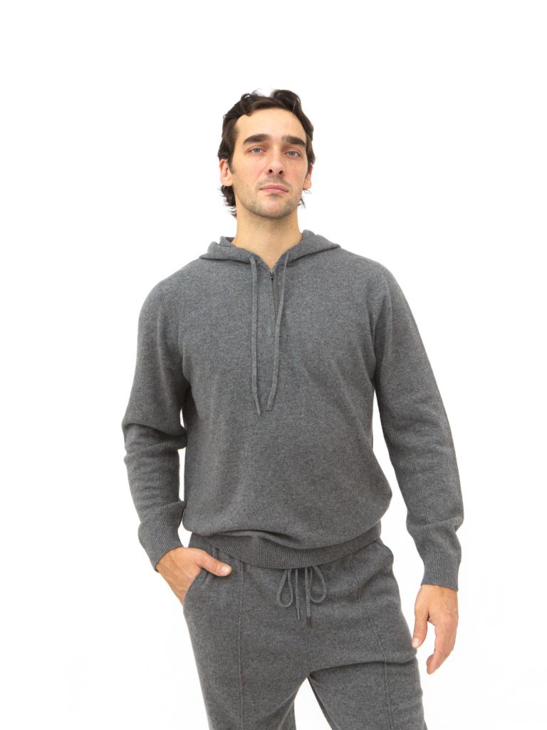 Элегантный мужской джемпер из 100% кашемира в графитовом цвете — премиальное дополнение к гардеробу для холодного сезона. Природные свойства натурального кашемира обеспечивают исключительную теплоизоляцию без утяжеления, позволяя коже дышать даже при длительной носке.Особенность модели — практичный капюшон, который не только защищает от ветра и сохраняет тепло, но и придает образу современный casual-стиль. Комфортный свободный крой не сковывает движений, а эластичные манжеты и подол на резинке создают аккуратный силуэт и предотвращают проникновение холодного воздуха.Графитовый оттенок — один из самых универсальных в мужском гардеробе. Он благородно выглядит как с джинсами, так и с классическими брюками, позволяя легко трансформировать образ от повседневного до элегантного. Джемпер одинаково хорошо смотрится под пальто или куртку, а также самостоятельно в качестве верхнего слоя.Кашемир отличается долговечностью при правильном уходе и с годами становится только мягче, сохраняя первоначальный вид и форму. Гипоаллергенные свойства материала делают его подходящим даже для чувствительной кожи.Дополните свой гардероб качественным кашемировым джемпером, который станет надежным спутником в холодное время года и подчеркнет ваш безупречный стиль на долгие годы.