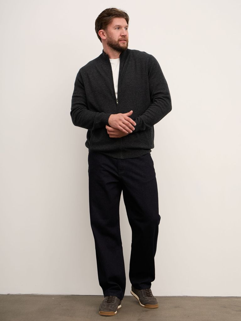 Классический мужской джемпер на молнии из 100% монгольского кашемира — это воплощение комфорта, практичности и современного стиля. Глубокий графитовый оттенок придаёт образу сдержанную элегантность, а натуральный кашемир обеспечивает мягкость и тепло без лишнего объёма.Детали и дизайнМодель выполнена в прямом крое с воротником-стойкой и застёжкой на молнию. Манжеты и нижняя резинка аккуратно фиксируют форму, обеспечивая комфортную посадку. Лаконичный дизайн делает этот джемпер универсальным элементом гардероба — он одинаково уместен как в деловом, так и в повседневном стиле.Как и с чем носитьС классическими брюками и рубашкой — для офисного образа без пиджака.С джинсами и футболкой — вариант для города и путешествий.Под пальто, куртку или жилет — в качестве тёплого среднего слоя.Сочетается с базовыми оттенками — белым, серым, бежевым, хаки и чёрным.Благодаря универсальному крою и нейтральному цвету, джемпер из кашемира станет надёжной базой для холодного сезона. Он придаёт образу аккуратность, не теряя в комфорте и мягкости.УходРучная стирка в холодной воде или химчистка.Сушить горизонтально, вдали от источников тепла.Не выкручивать, не отбеливать, хранить в сложенном виде.Джемпер из 100% кашемира в графитовом оттенке — выбор для тех, кто ценит качество, лаконичность и натуральное тепло в каждой детали.