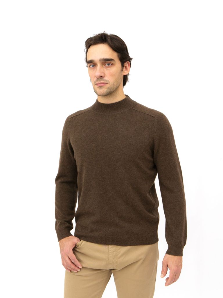 Лаконичный джемпер из натурального пуха яка в глубоком коричневом оттенке. Минималистичный дизайн делает модель универсальной для повседневного гардероба и более собранных образов.