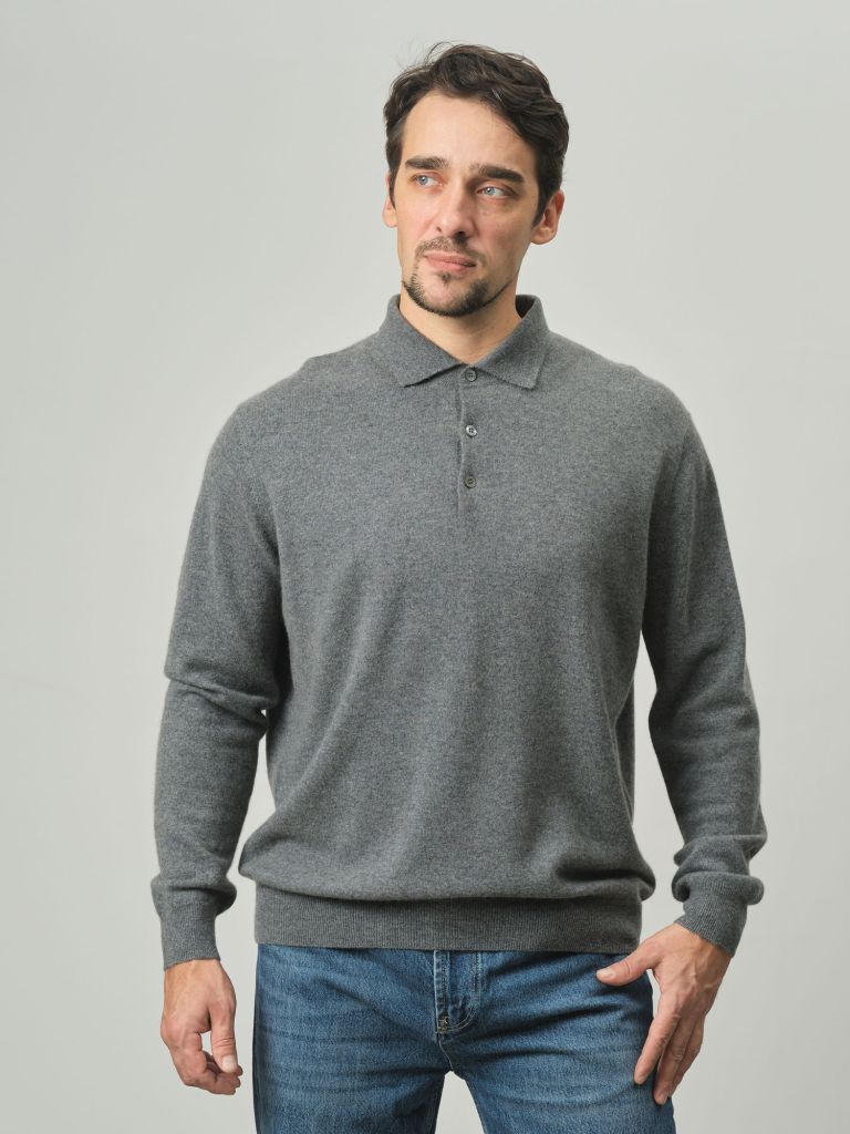 Мужской джемпер-поло из кашемира — элегантная модель, сочетающая классический стиль и современный комфорт. Отлично подходит для повседневных и деловых образов.
