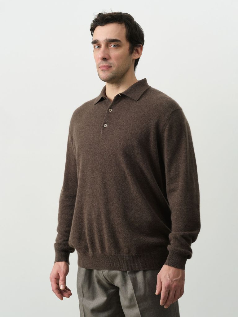 Мужской джемпер из кашемира с воротником поло — элегантная и универсальная модель, которая сочетает комфорт повседневной одежды с элементами классического стиля.