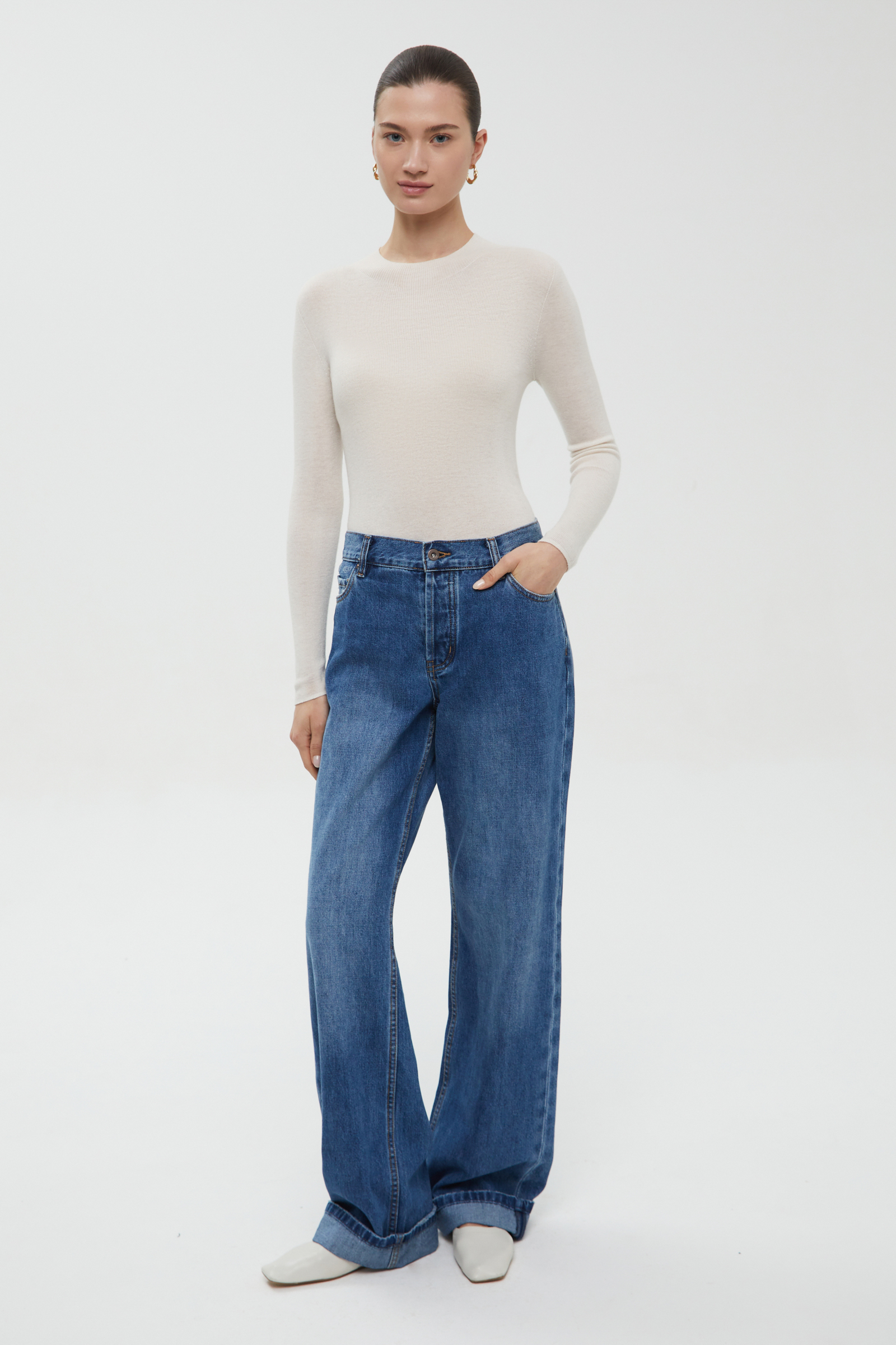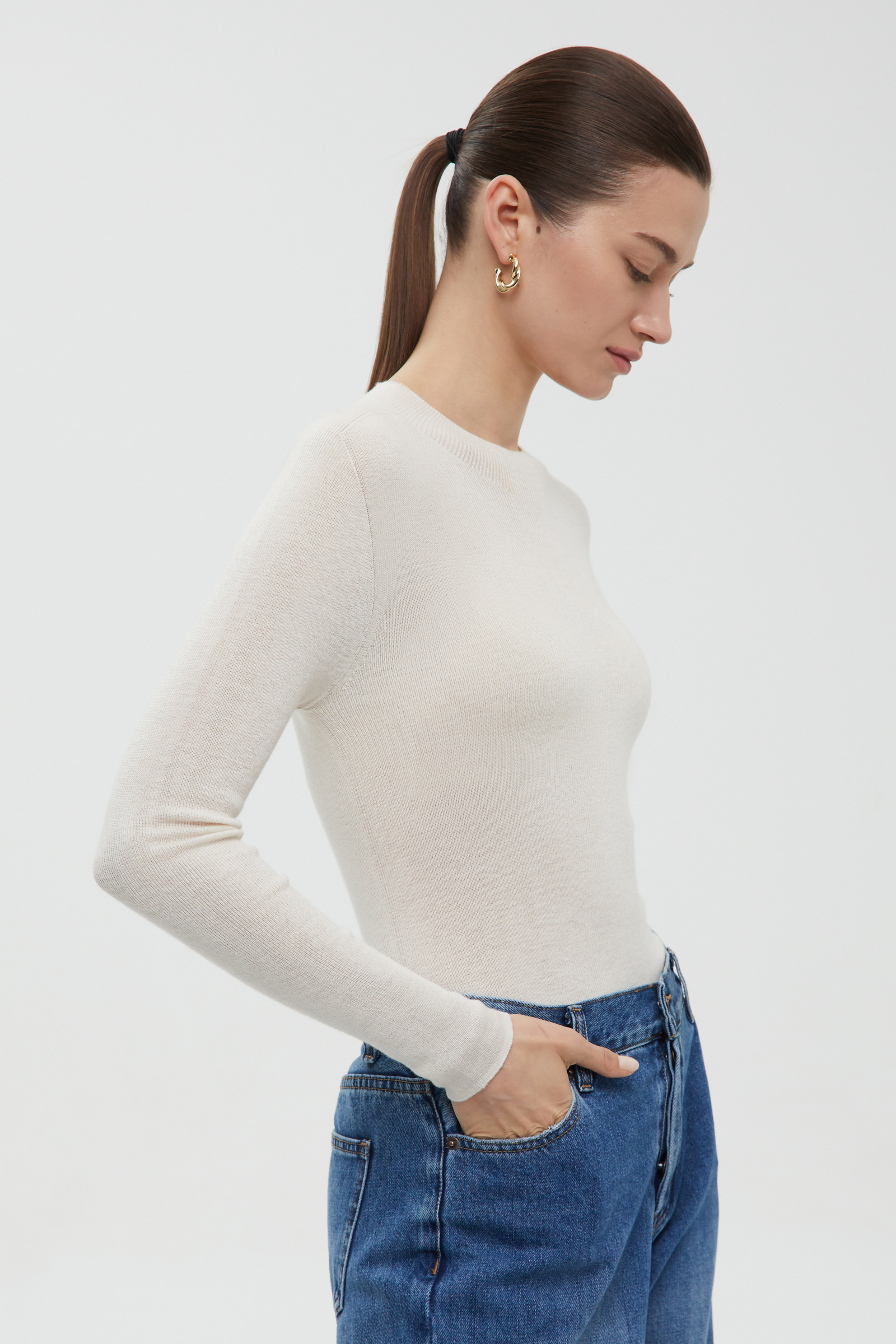 Джемпер с округлой горловиной прямого силуэта