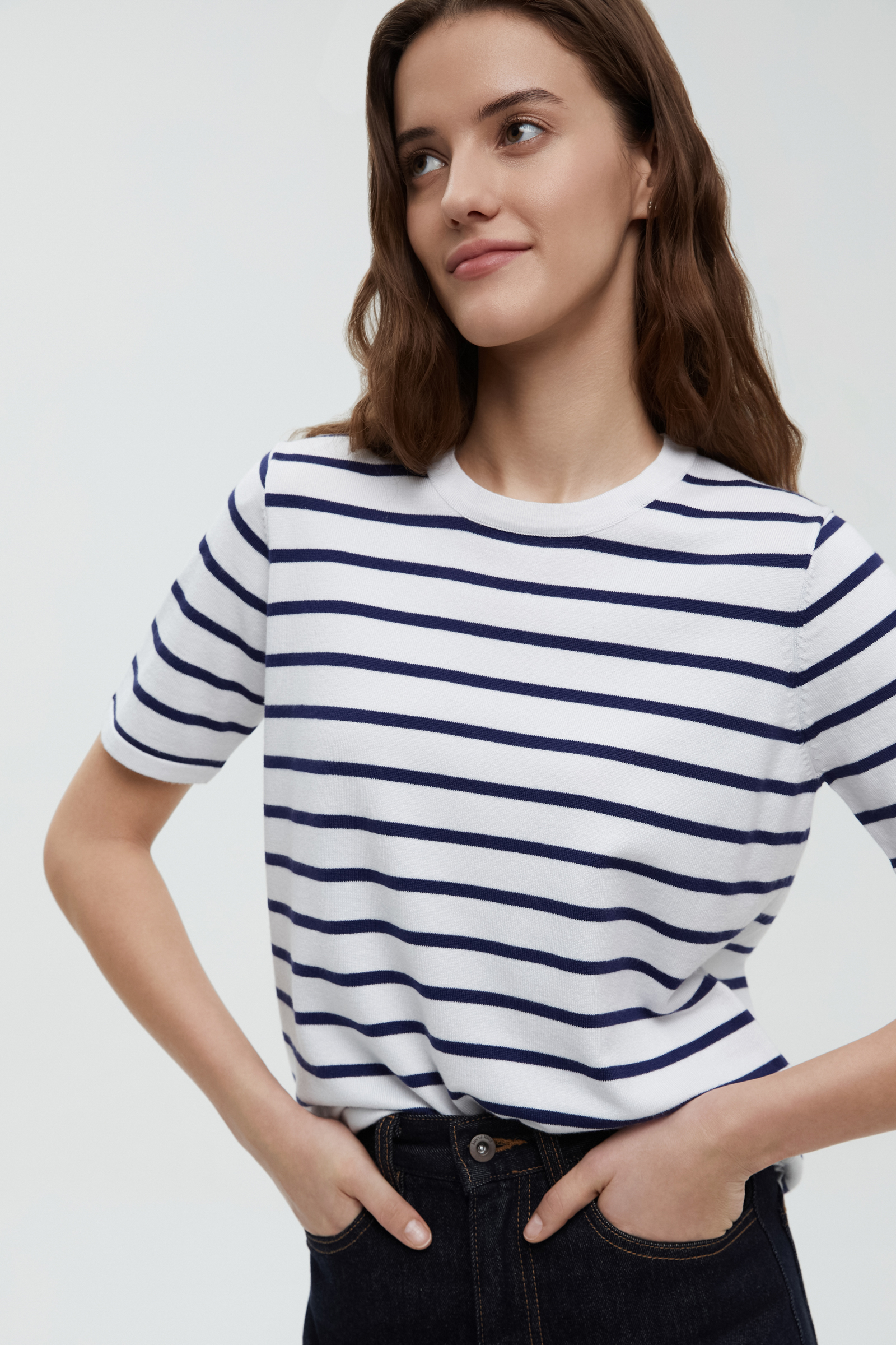Джемпер в полоску с коротким рукавом
