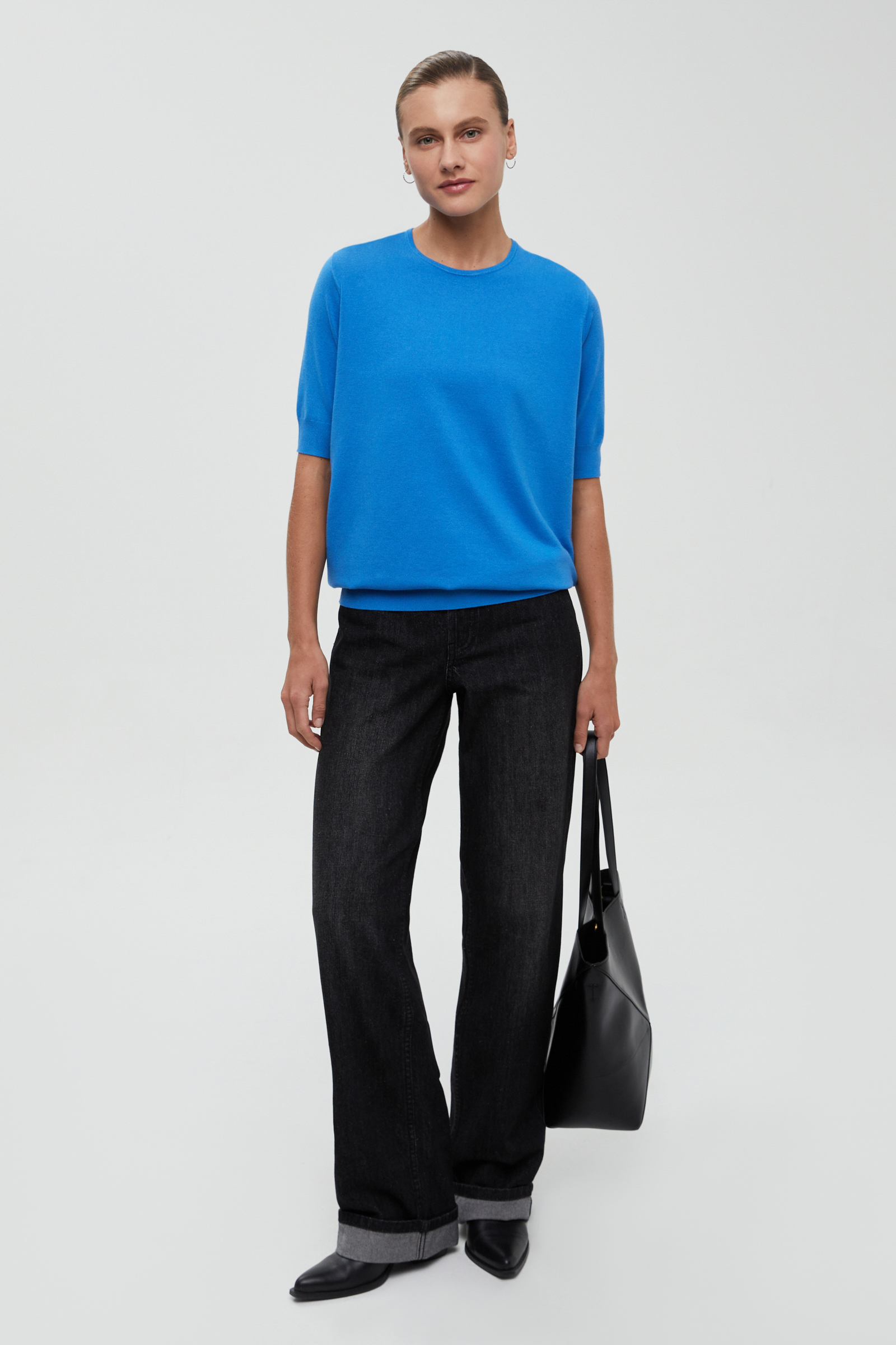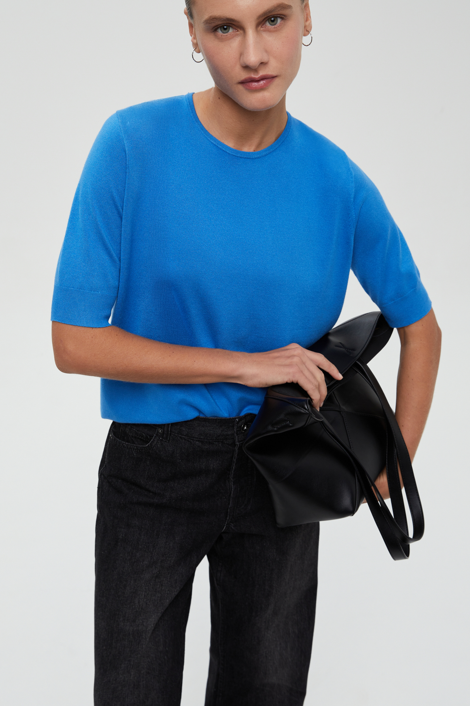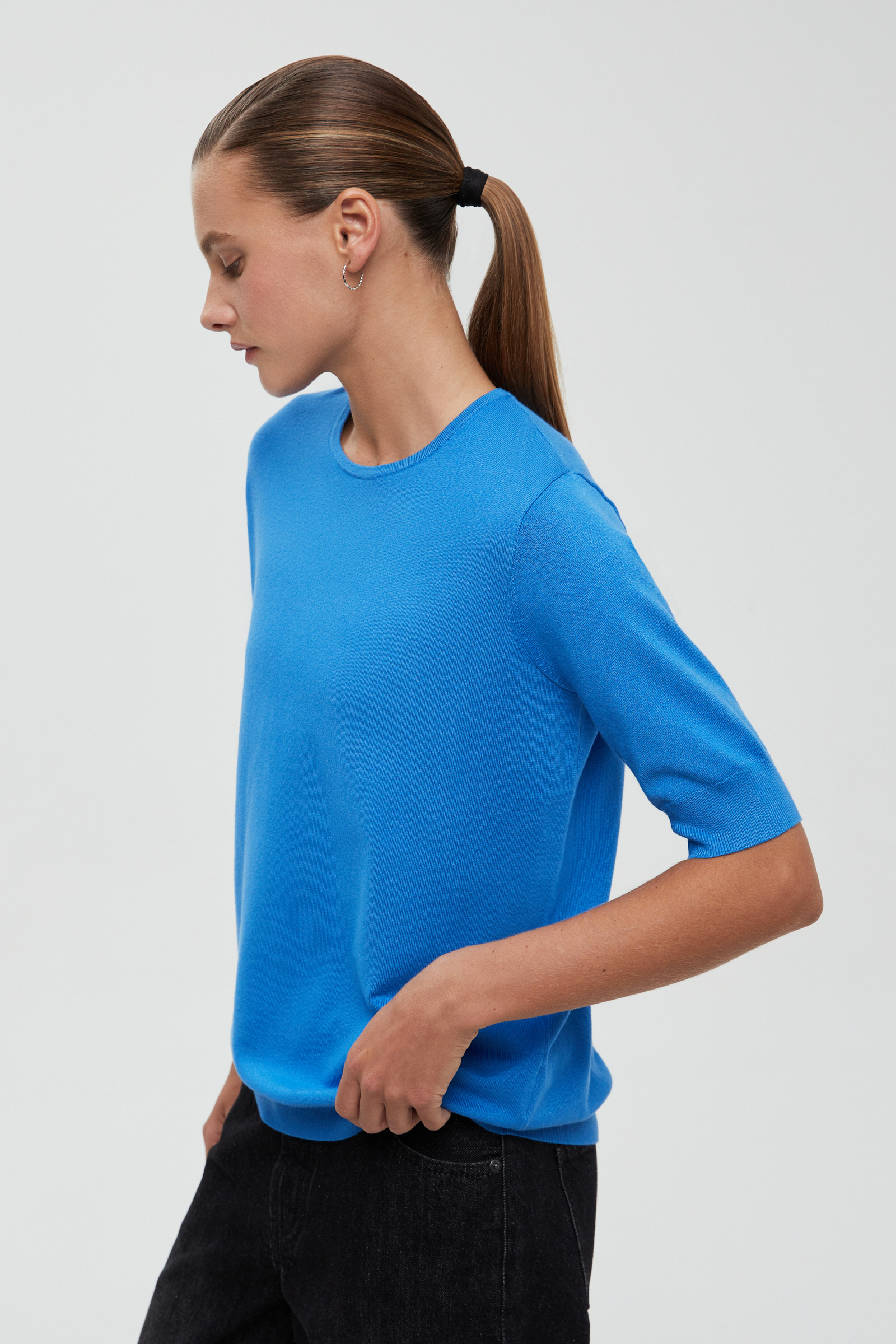 Джемпер с коротким рукавом и округлой горловиной