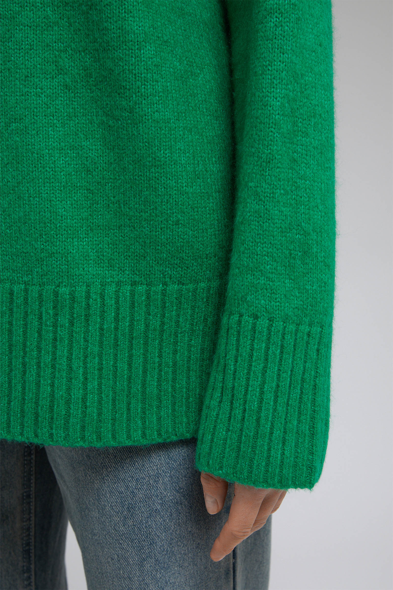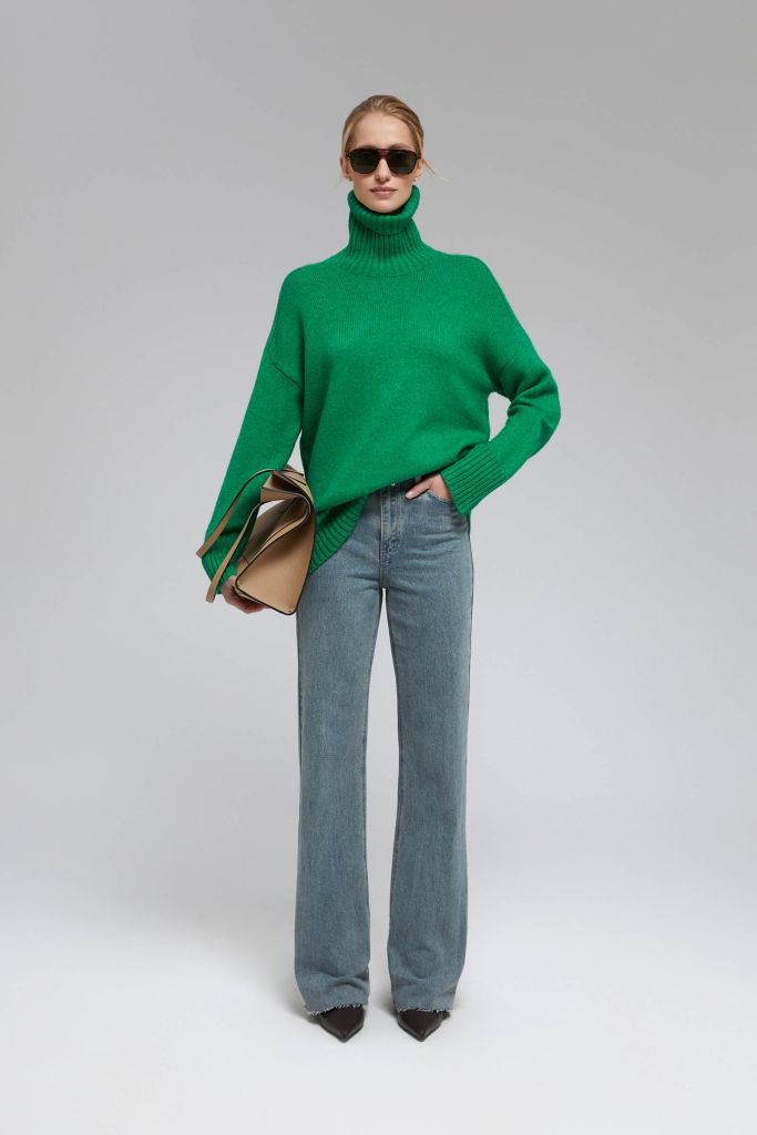 Джемпер с воротником-стойкой и спущенным плечом