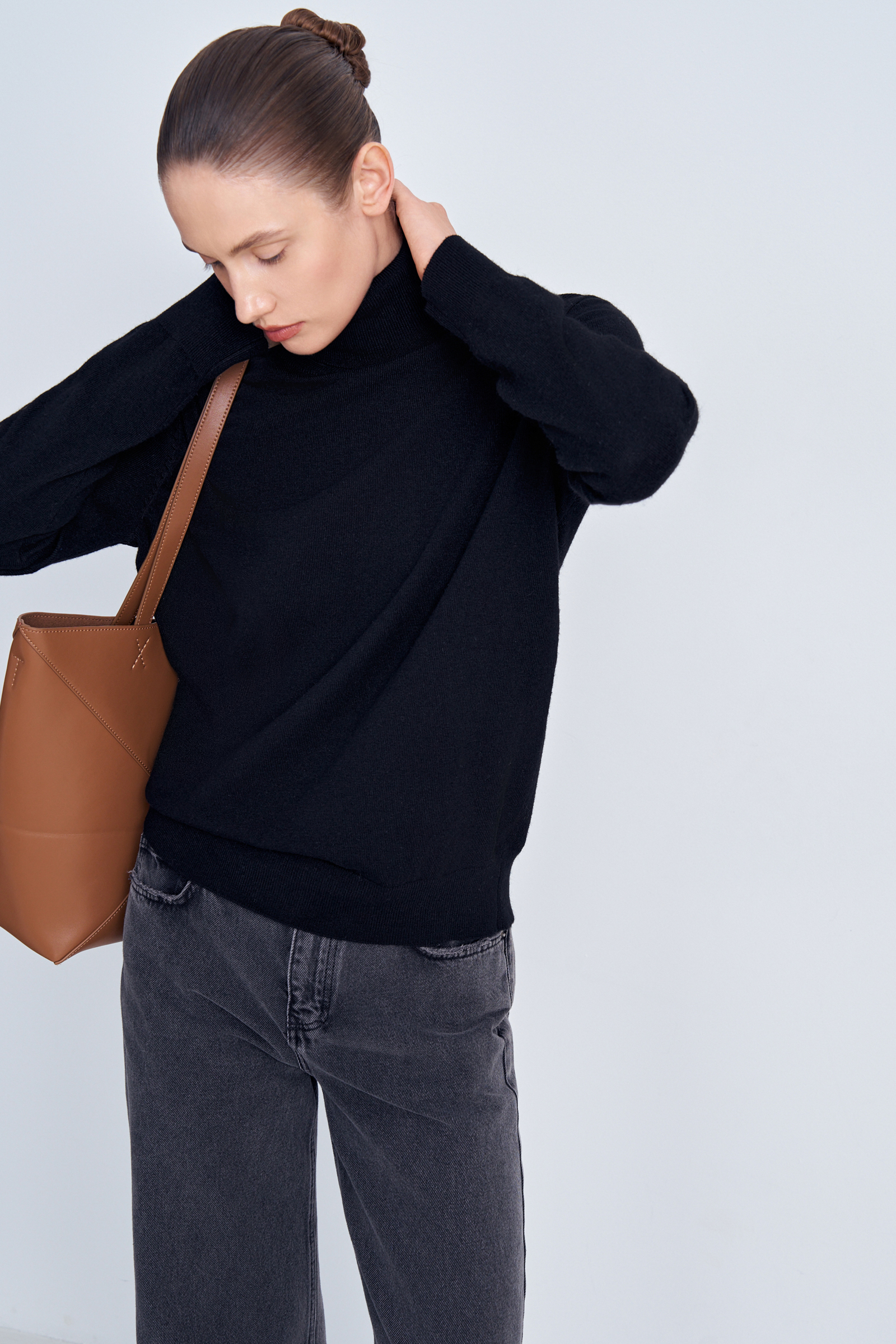 Свитер свободного силуэта с воротником-стойкой