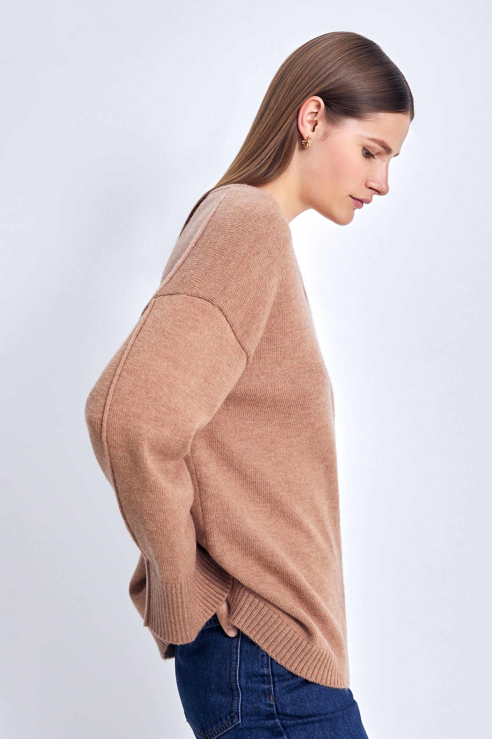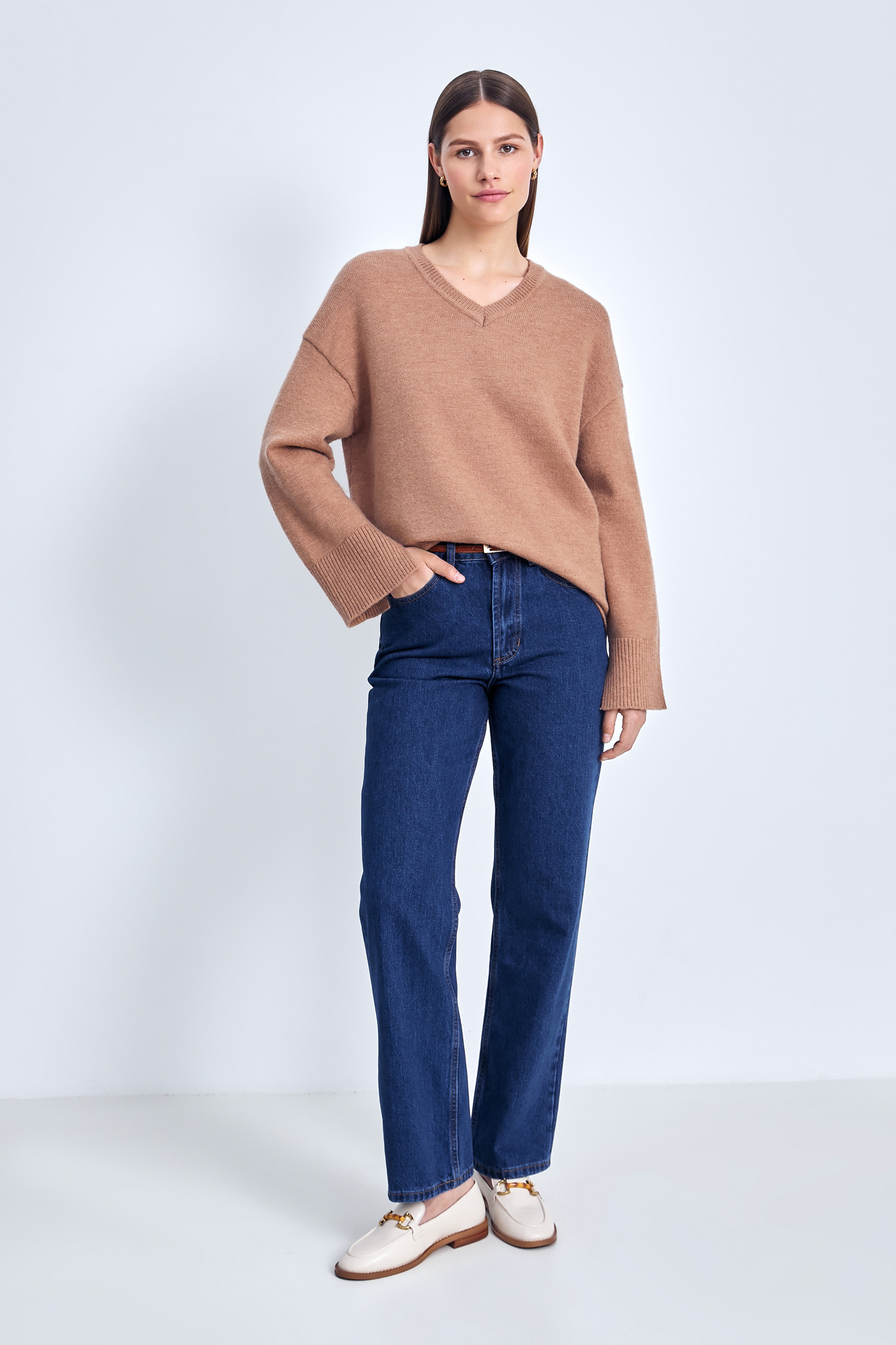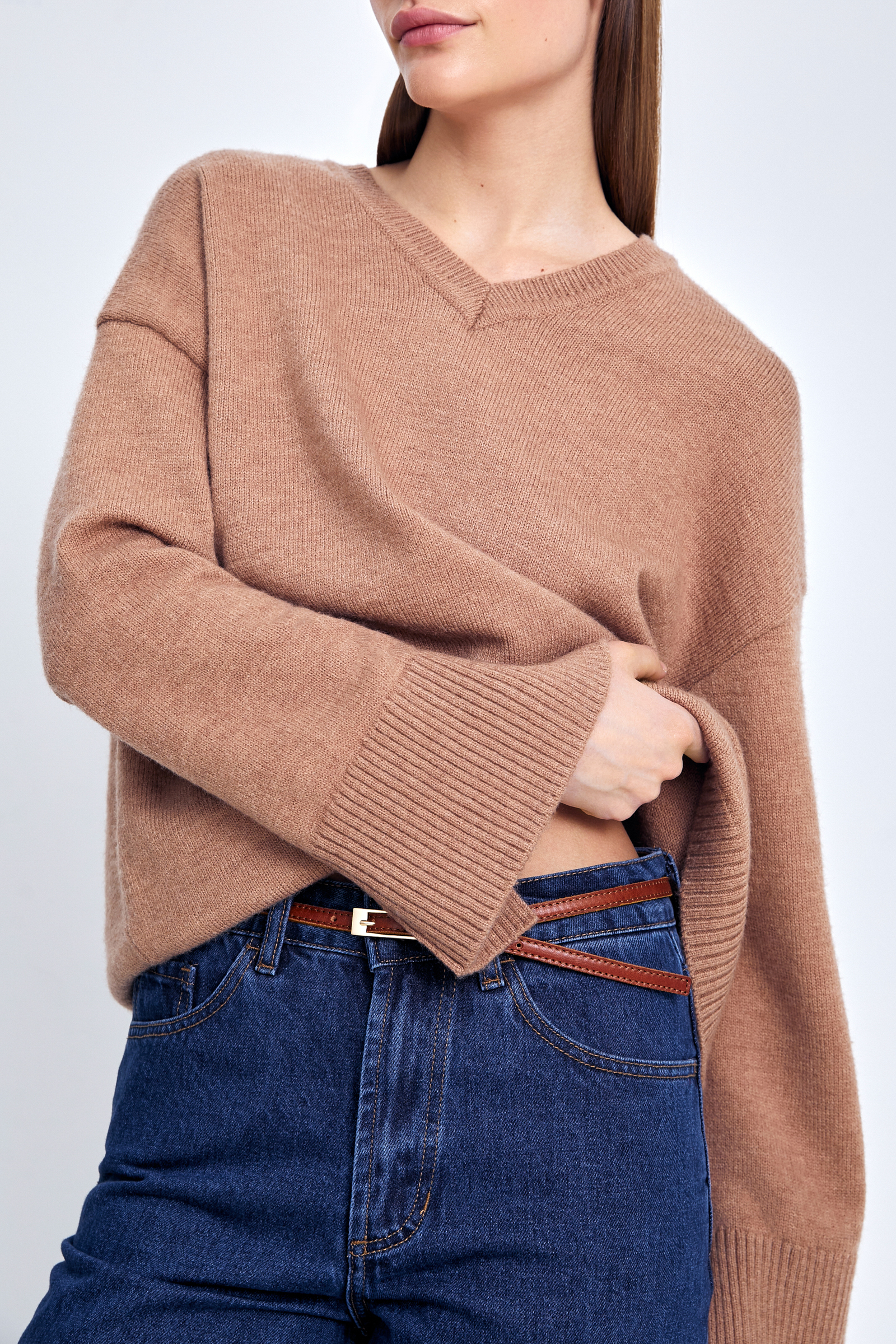 Джемпер с v-образной горловиной и широкими рукавам