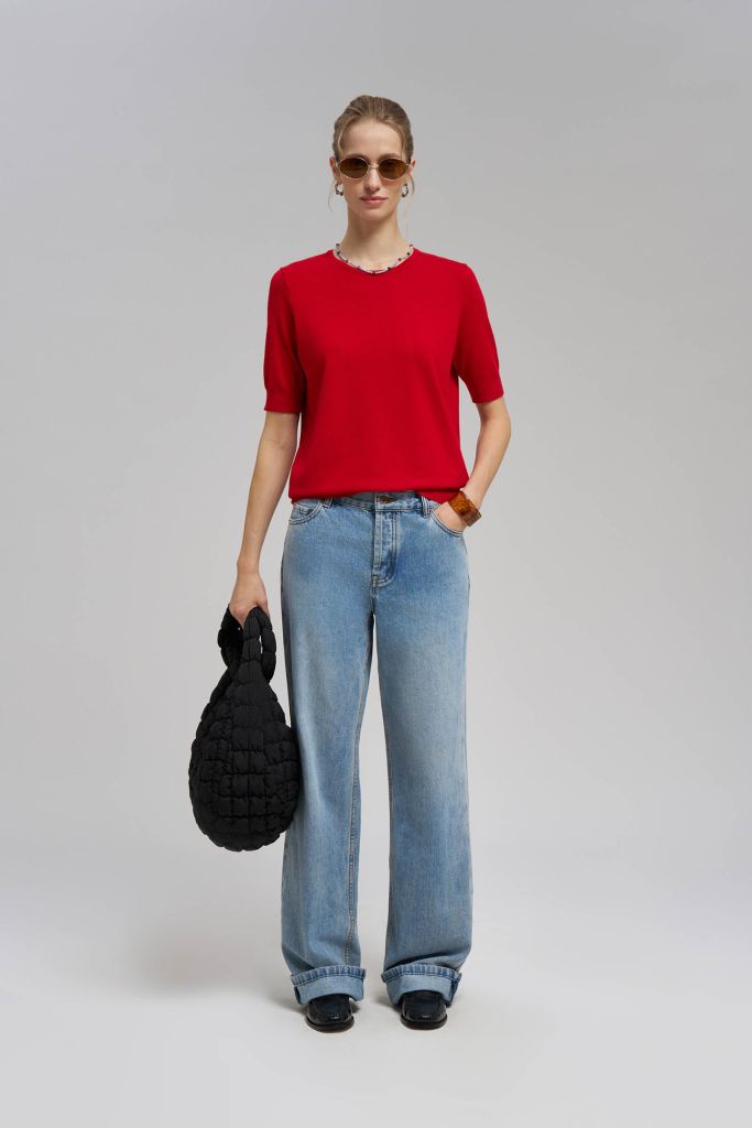Легкий джемпер прямого кроя с коротким рукавом