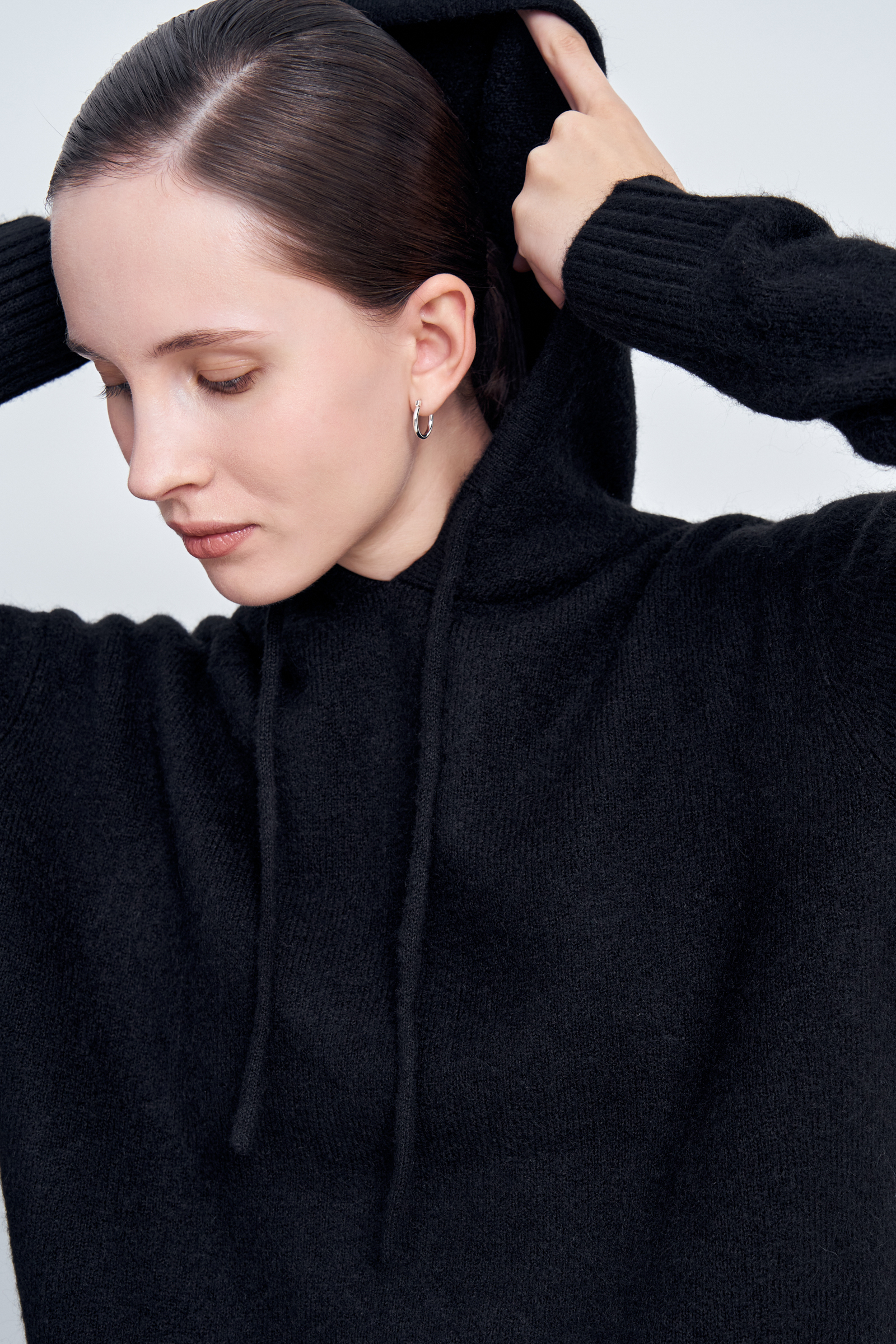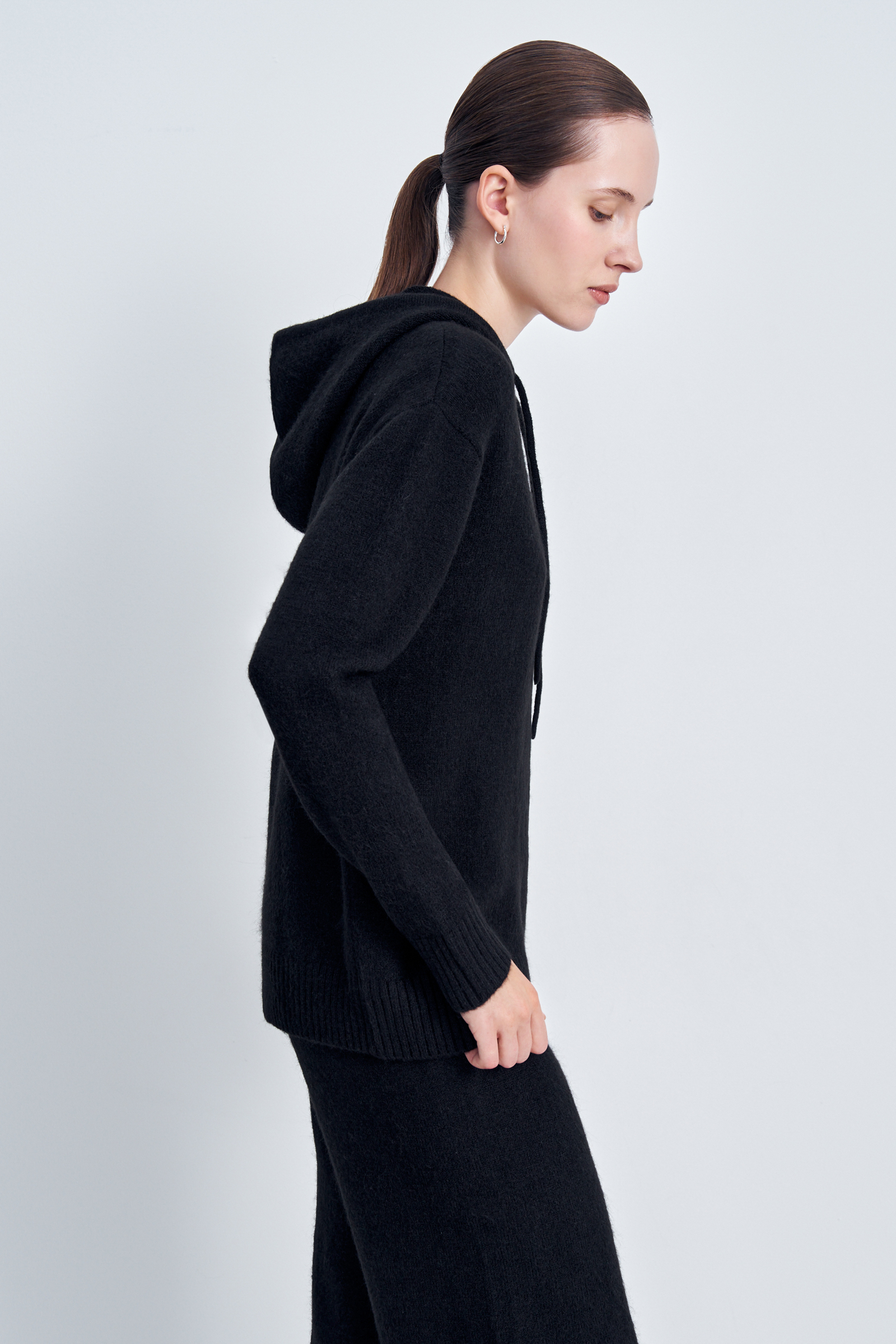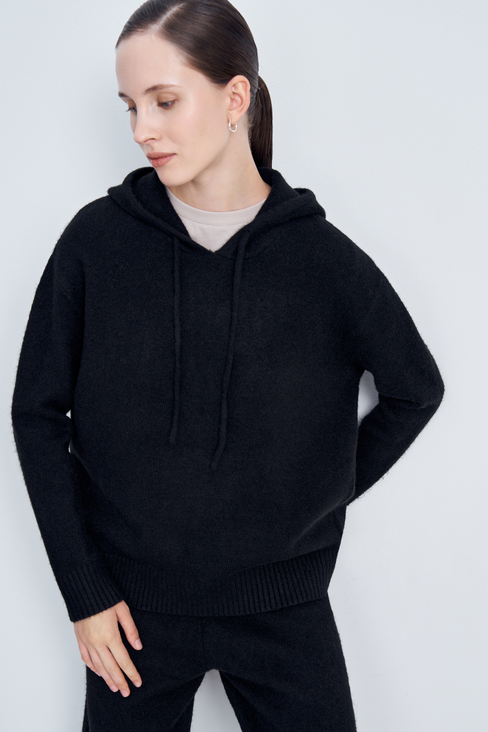 Вязаное худи прямого силуэта