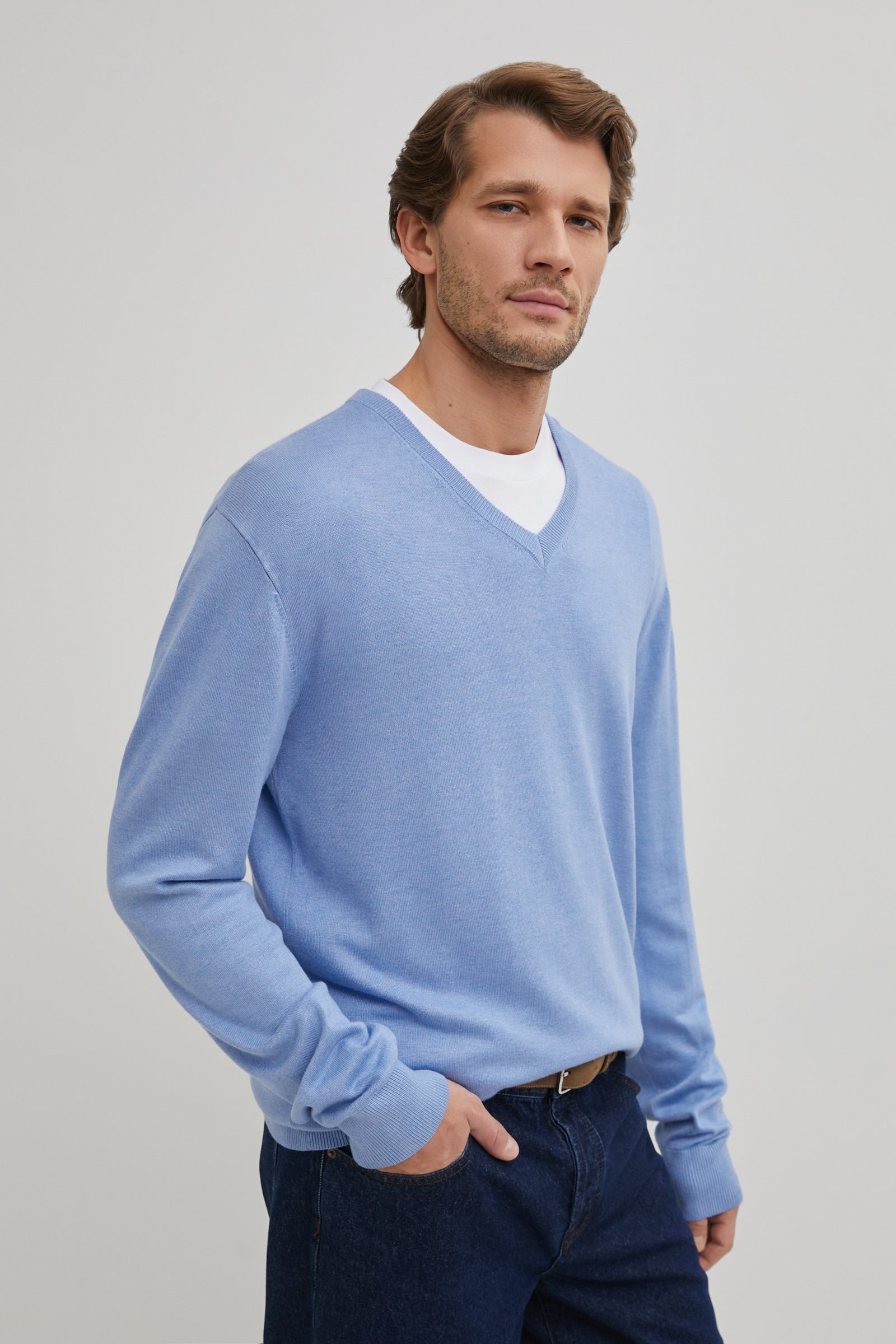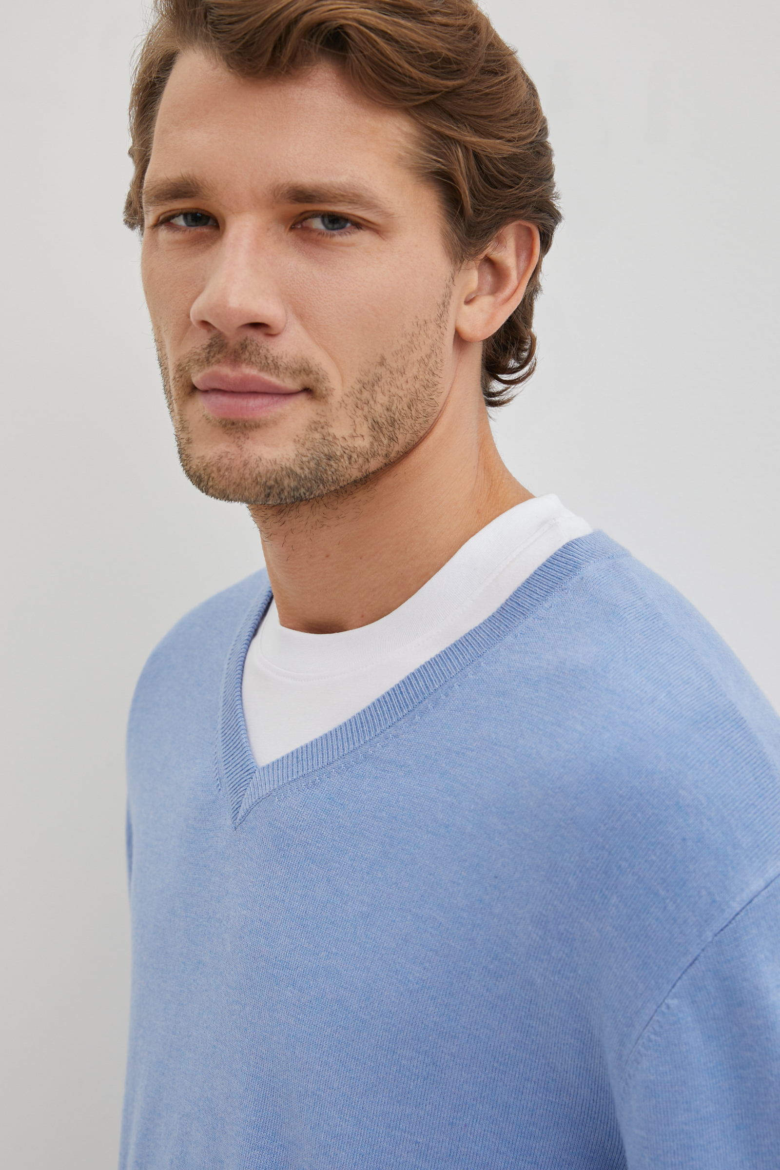 Джемпер из шерсти и хлопка с v-образной горловиной