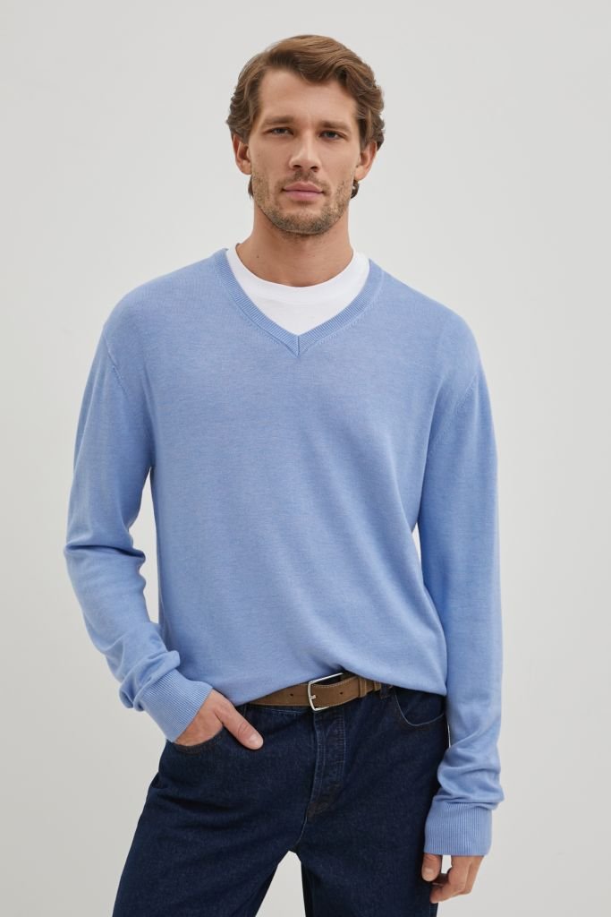 Джемпер из шерсти и хлопка с v-образной горловиной