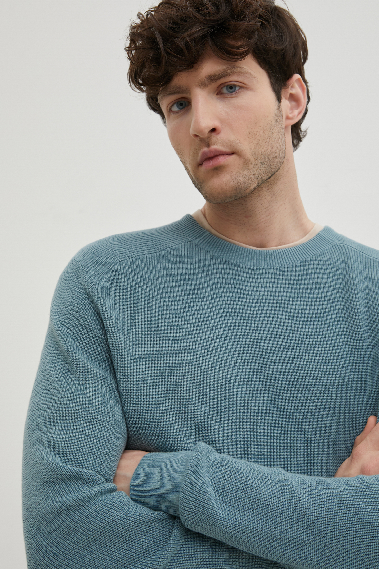 Джемпер из шерсти и хлопка с округлой горловиной