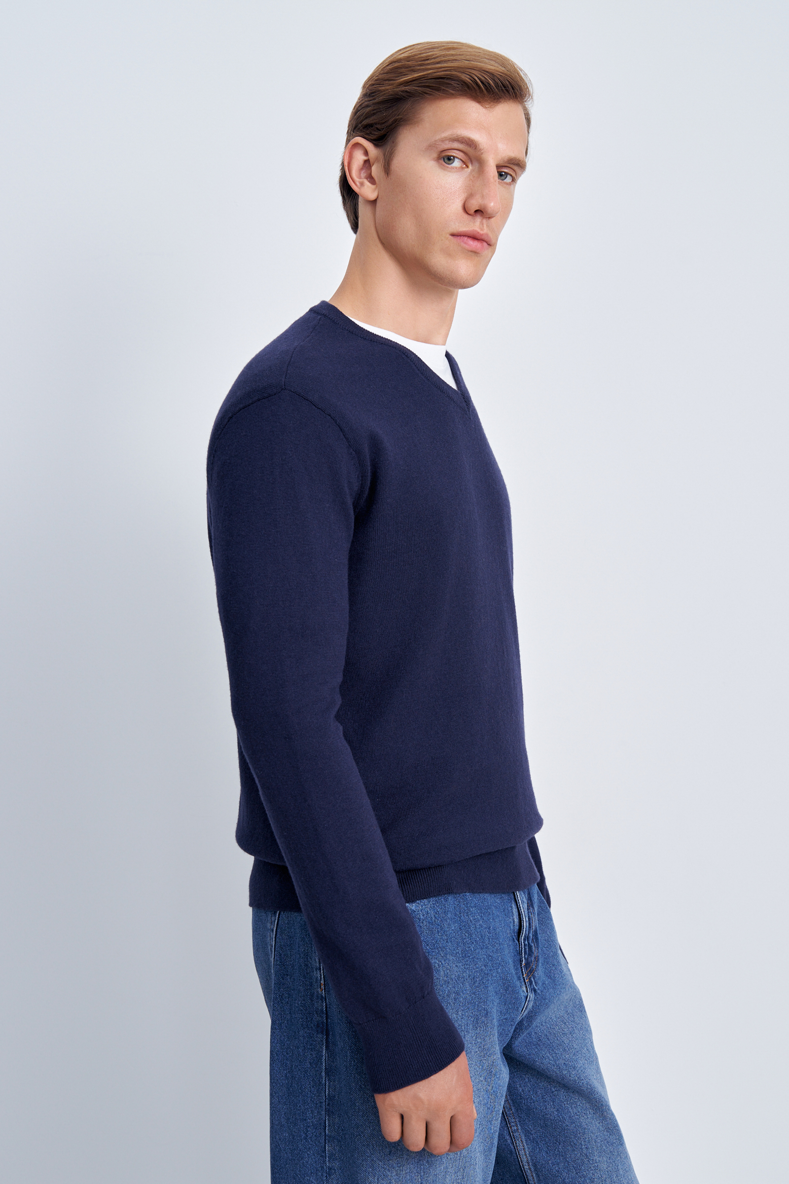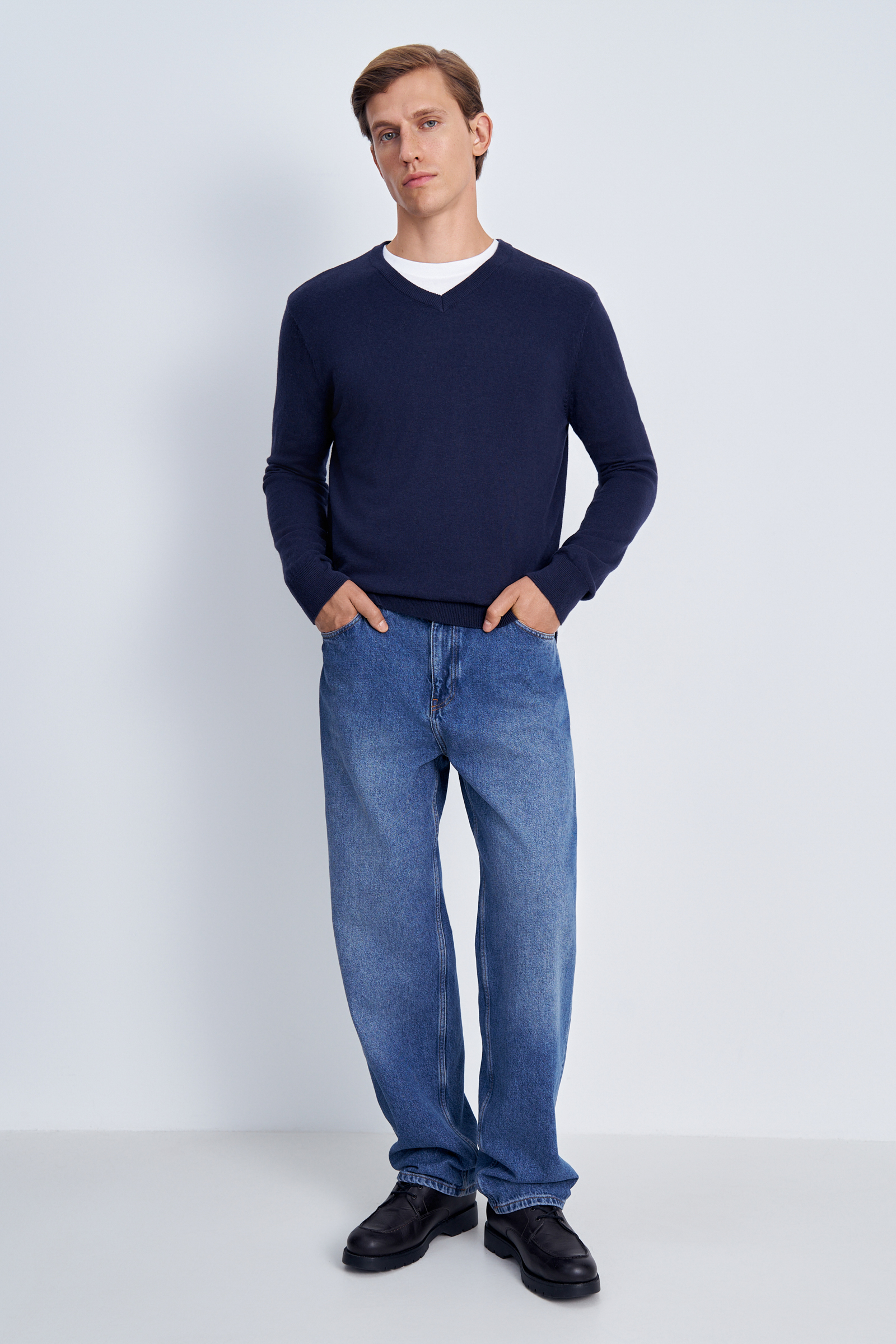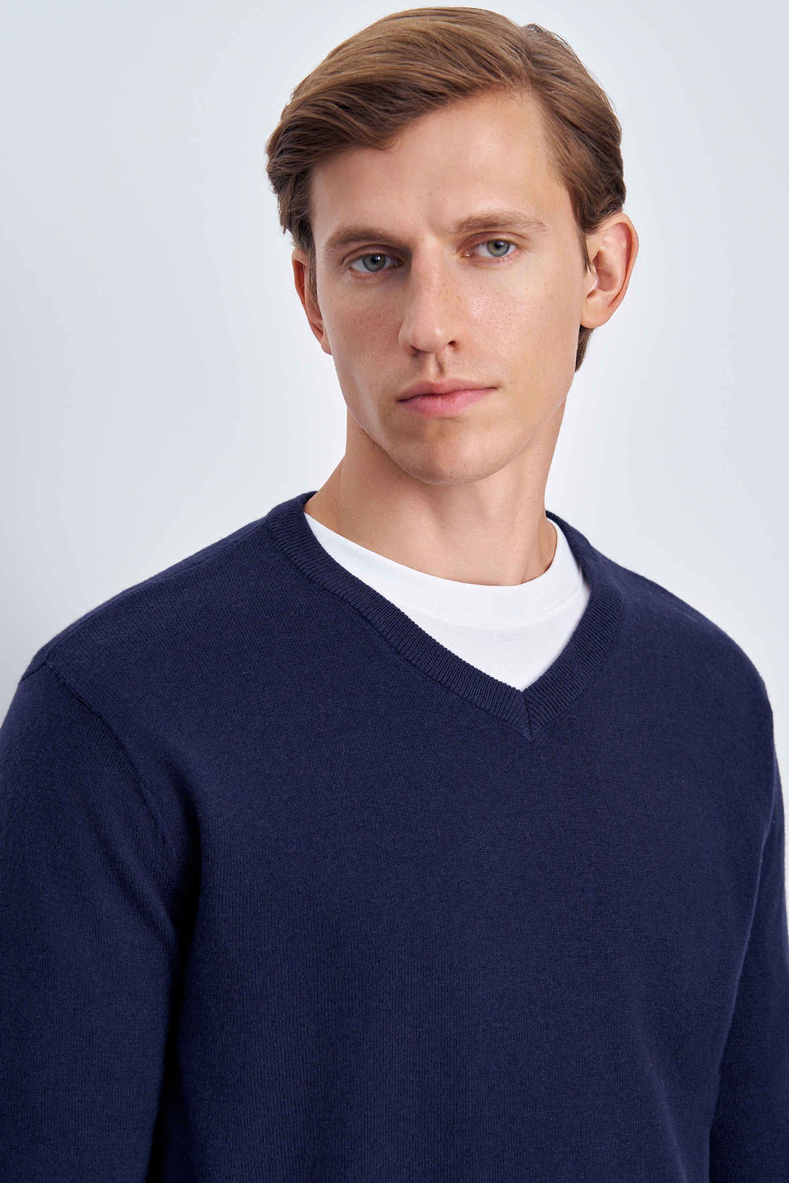 Джемпер из шерсти и хлопка с v-образной горловиной
