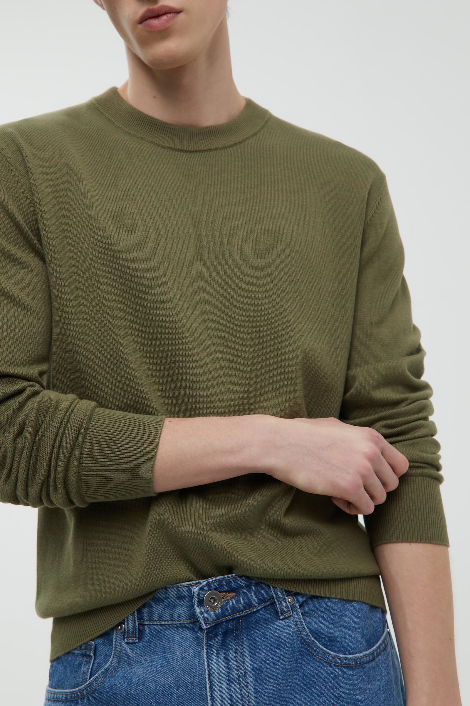 Джемпер из шерсти и хлопка с округлой горловиной