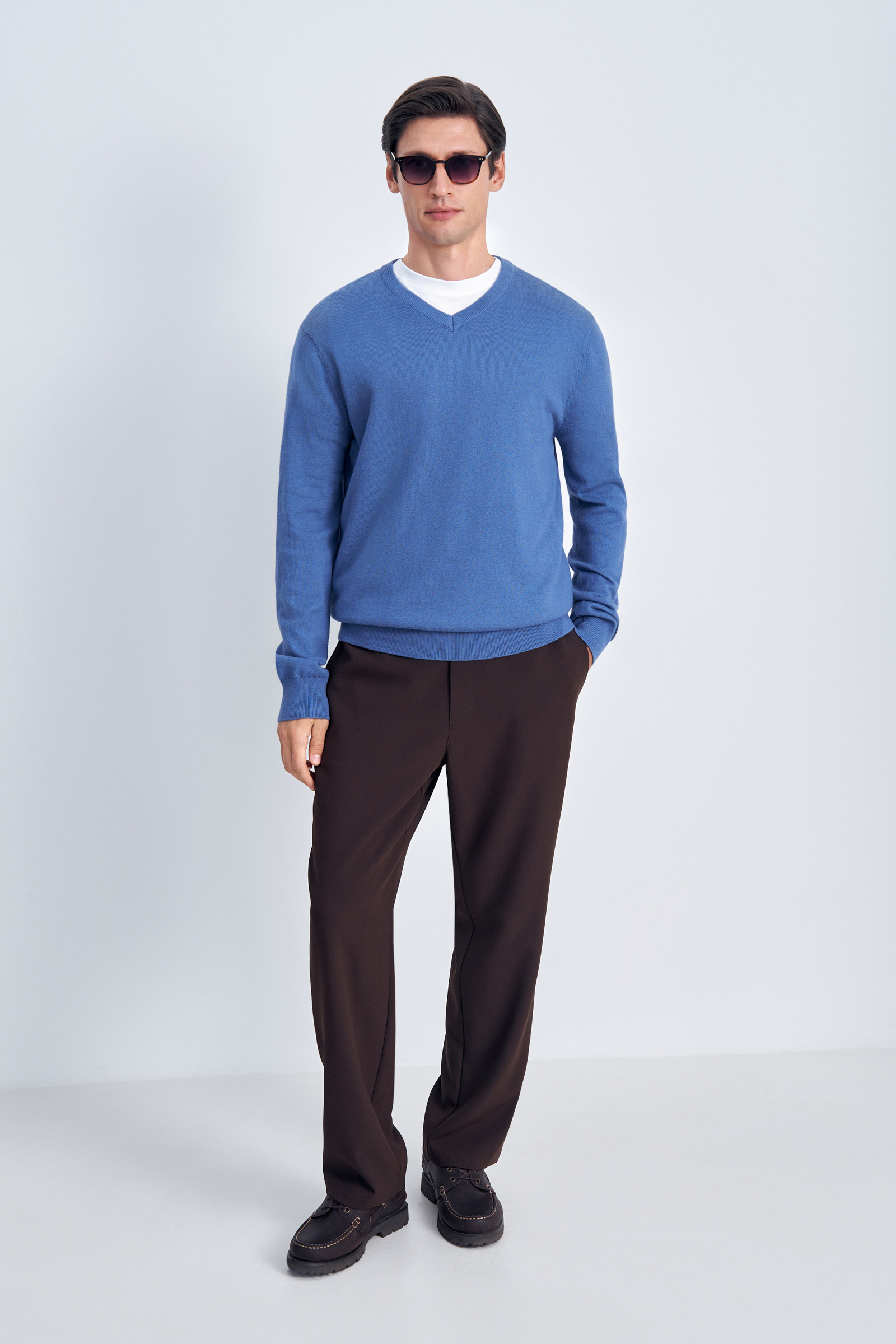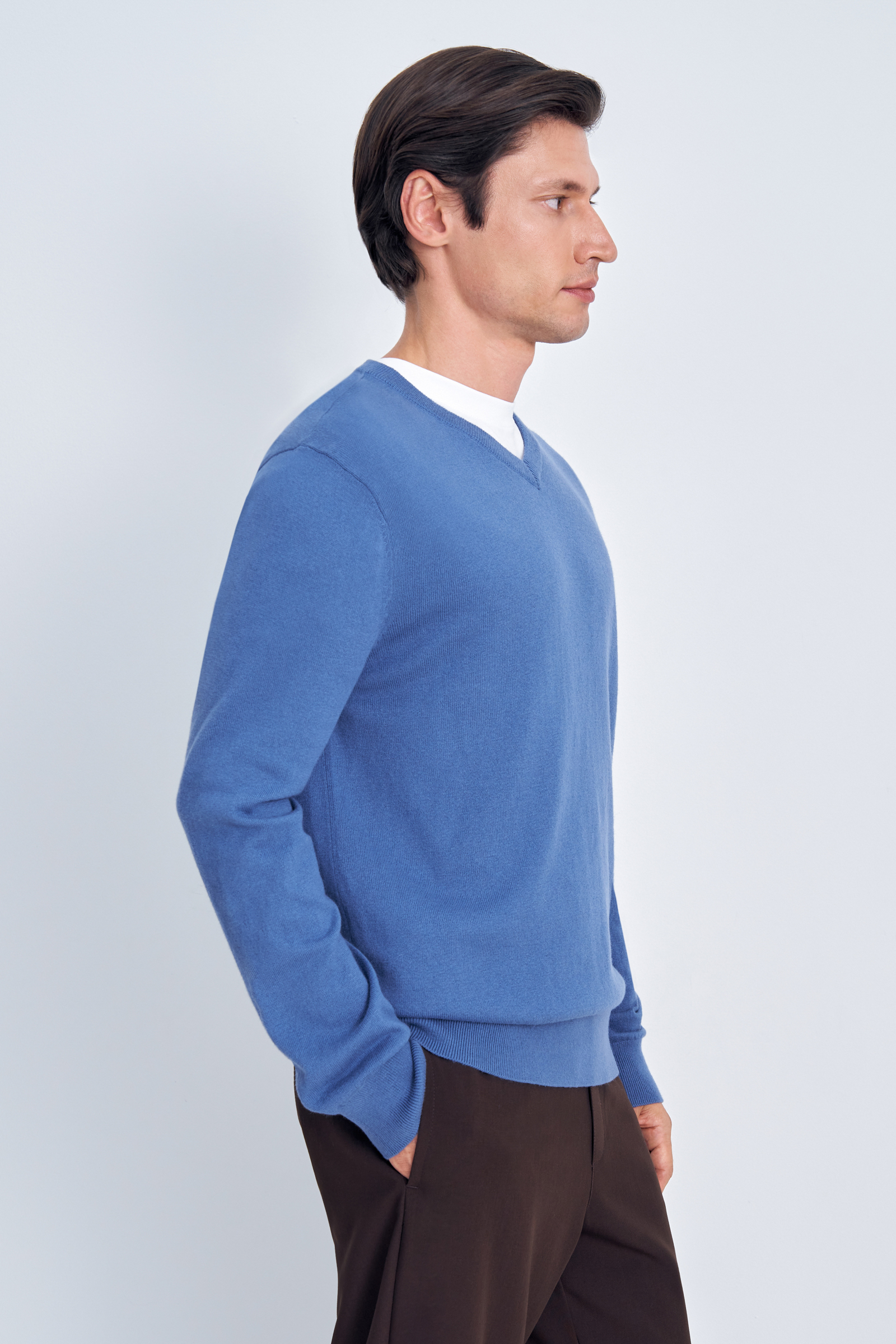 Джемпер из шерсти и хлопка с v-образной горловиной