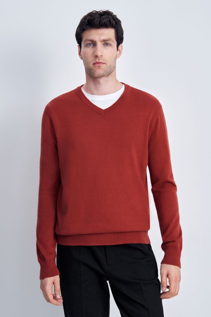 Джемпер из шерсти и хлопка с v-образной горловиной