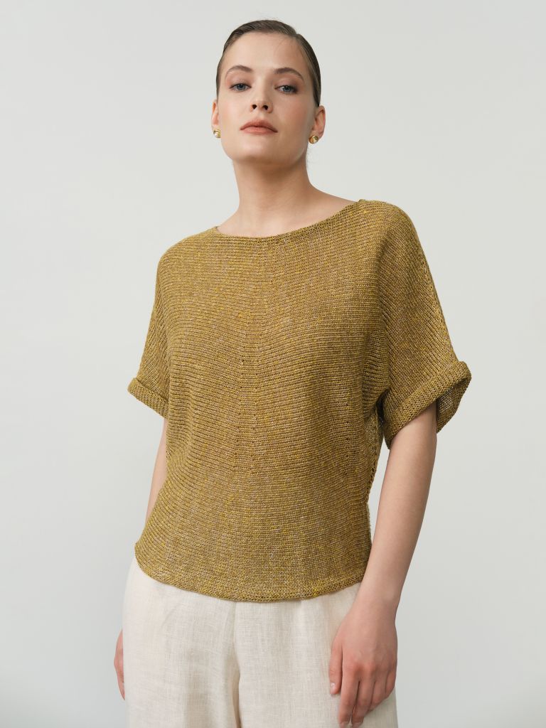 Женский льняной джемпер в золотистом цвете — идеальный выбор для теплого сезона. Изготовлен из 100% натурального льна, этот джемпер отличается легкостью и воздухопроницаемостью, обеспечивая вам комфорт даже в самые жаркие дни. Золотистый оттенок придаст вашему образу элегантность и утонченность, легко сочетается с различными элементами гардероба. Джемпер выполнен с короткими рукавами и свободным силуэтом, что делает его удобным и практичным для повседневной носки. Он подходит как для работы, так и для отдыха на природе или прогулок по городу. Этот джемпер станет незаменимым элементом вашего гардероба, даря комфорт и стиль в любой ситуации.