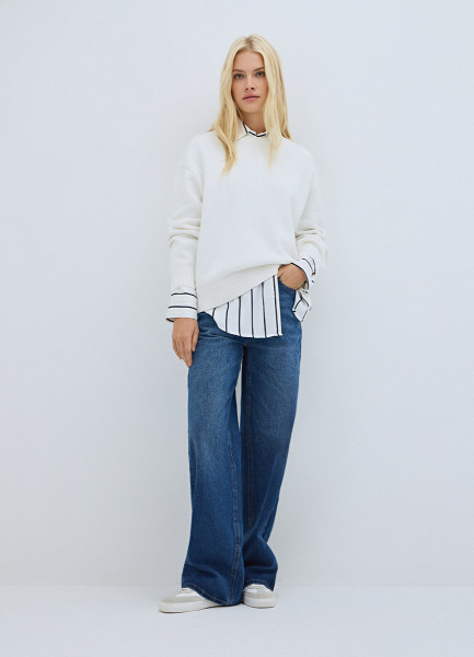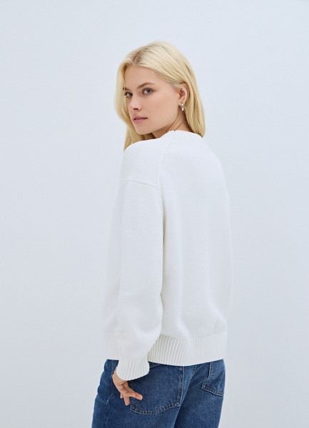 Джемпер с ромбами из пряжи с шерстью, Бежевый
