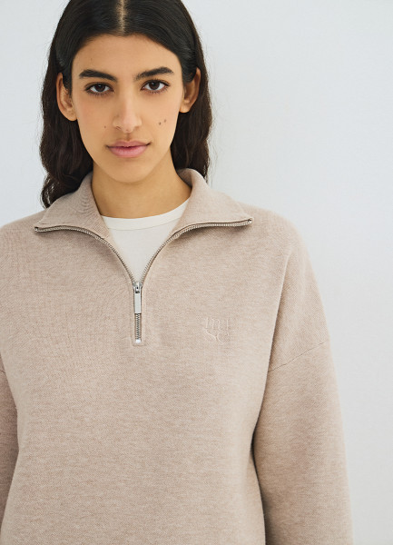 Джемпер с воротником-стойкой на молнии, Бежевый