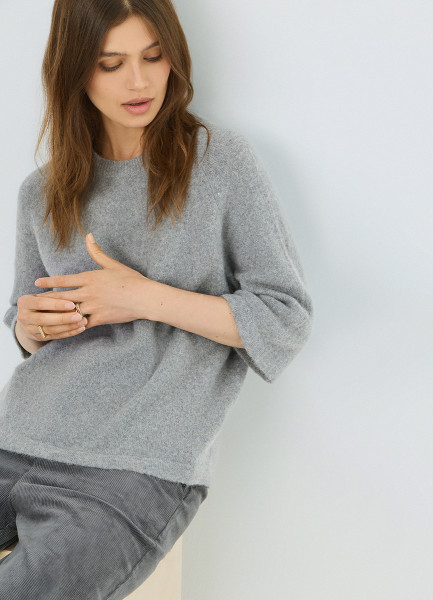 Джемпер из пушистой пряжи с коротким рукавом, Розовый