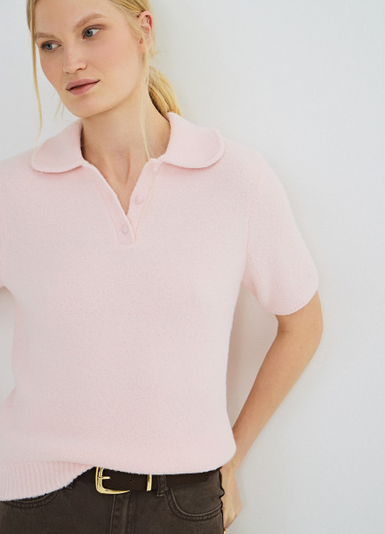 Джемпер из пушистой пряжи с коротким рукавом, Розовый