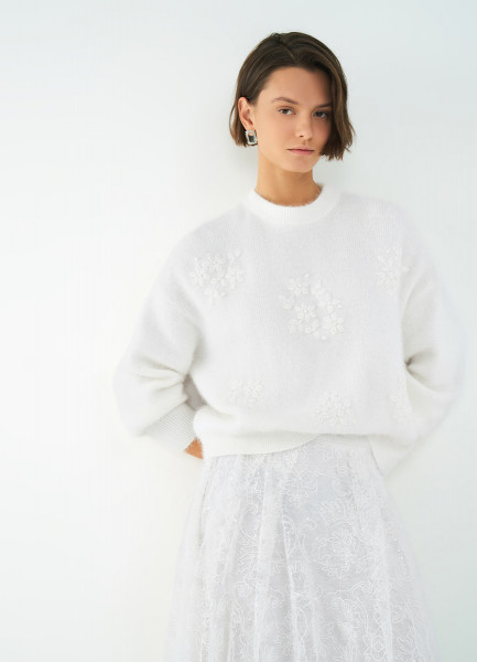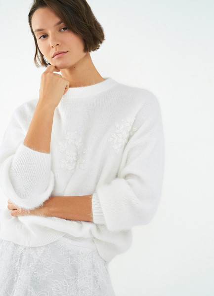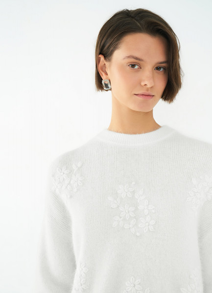 Джемпер из пушистой пряжи с коротким рукавом, Розовый