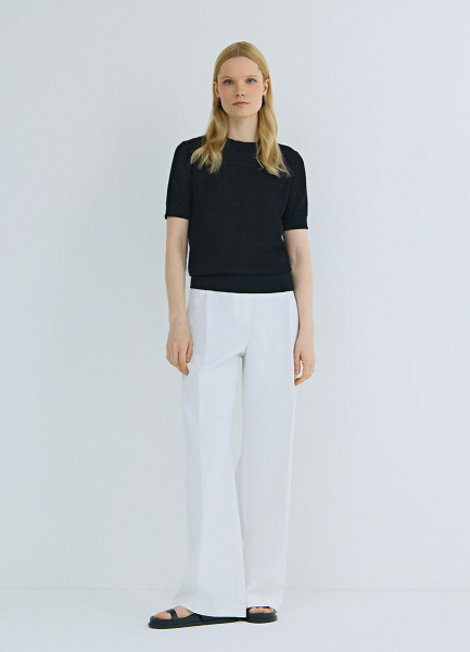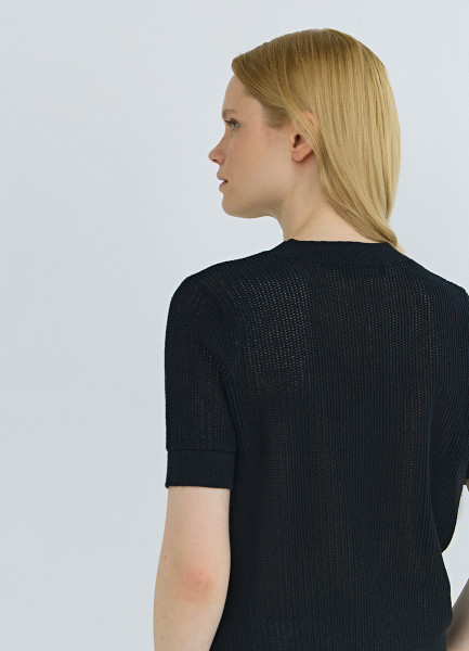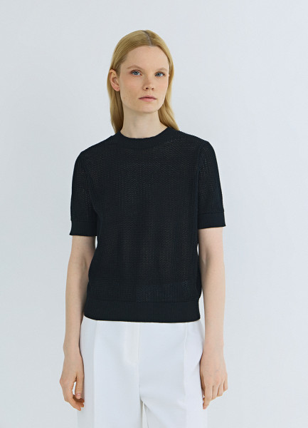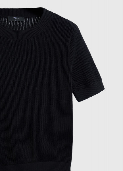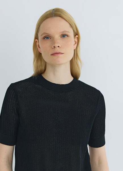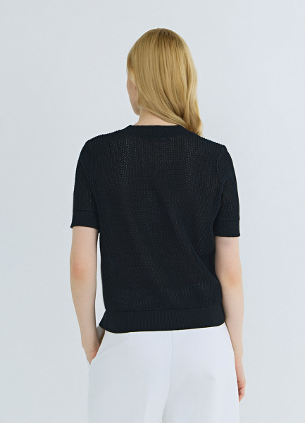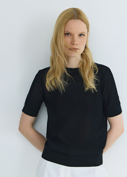 Ажурный джемпер с коротким рукавом, Черный