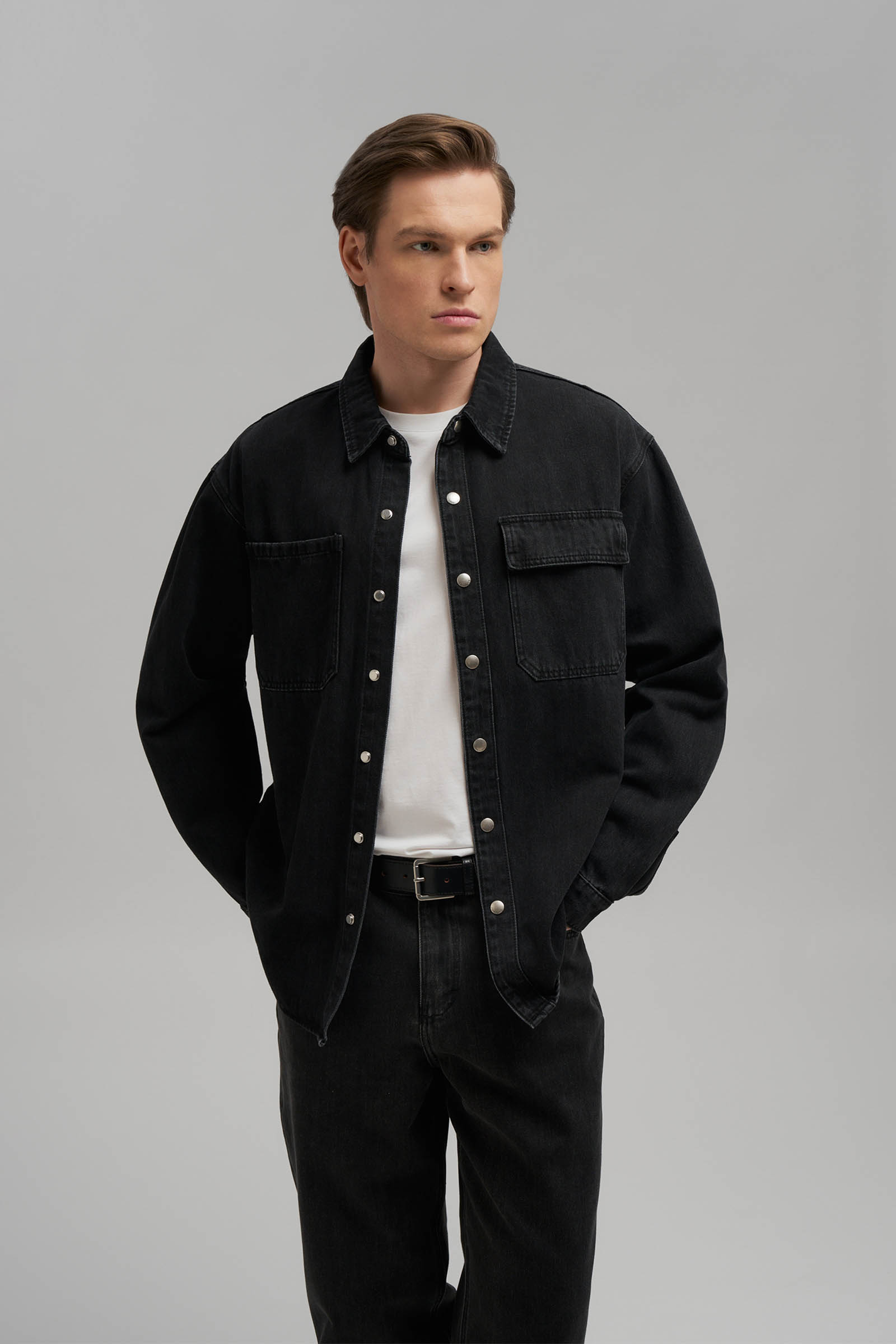 Джинсовая рубашка объемного кроя